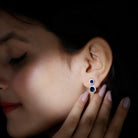 Besides serving to adorn the body, these created blue sapphire earrings are also a royal symbol of love. These dangle earrings are embellished with created blue sapphire and Moissanite accentuating the piece by creating scintillating halo. Get these dangle earrings for your lady and make her feel that your for her is eternal. She will look pretty adorning these created blue sapphire and Moissanite earrings for sure!