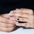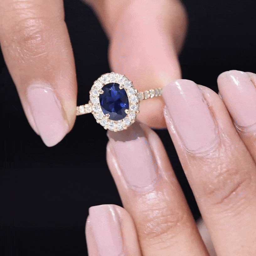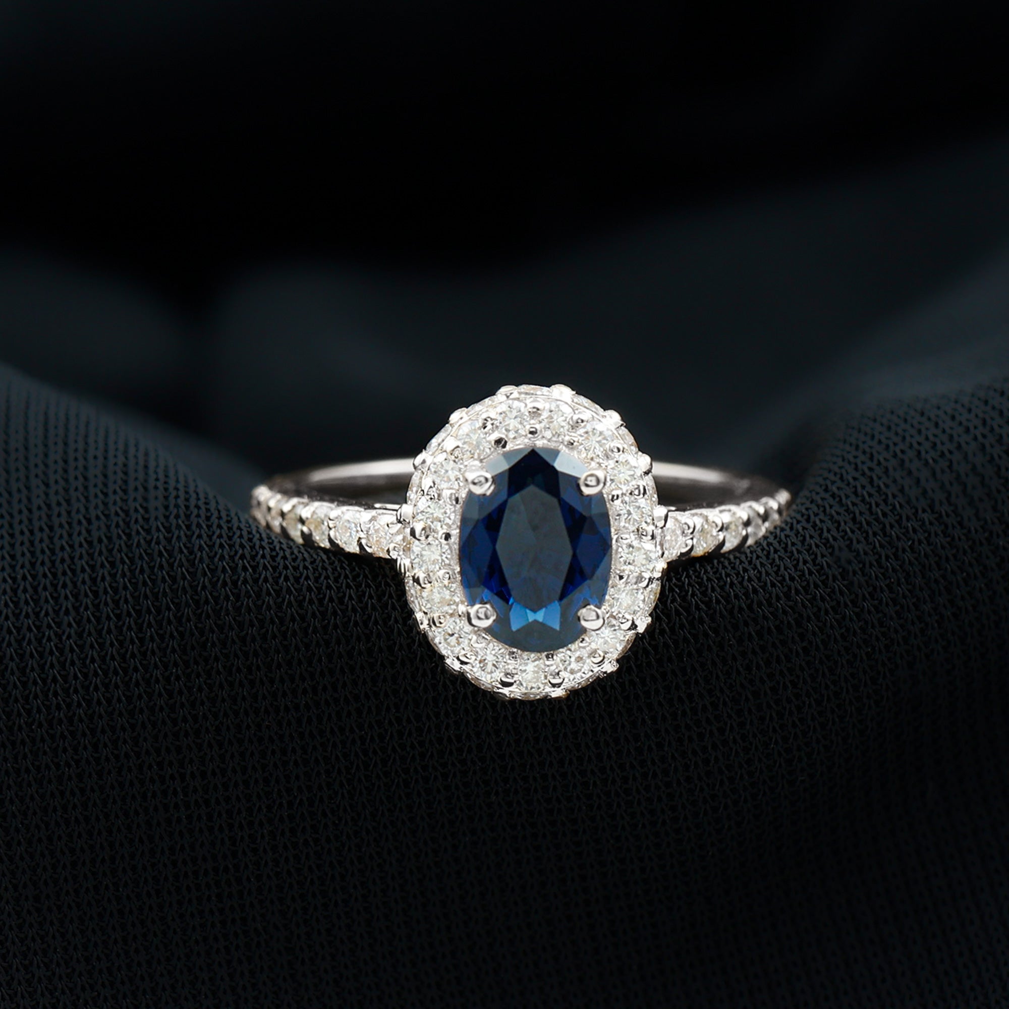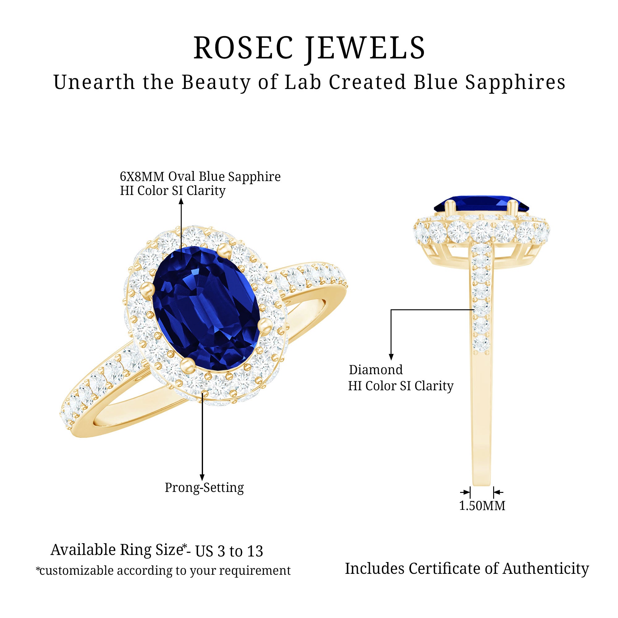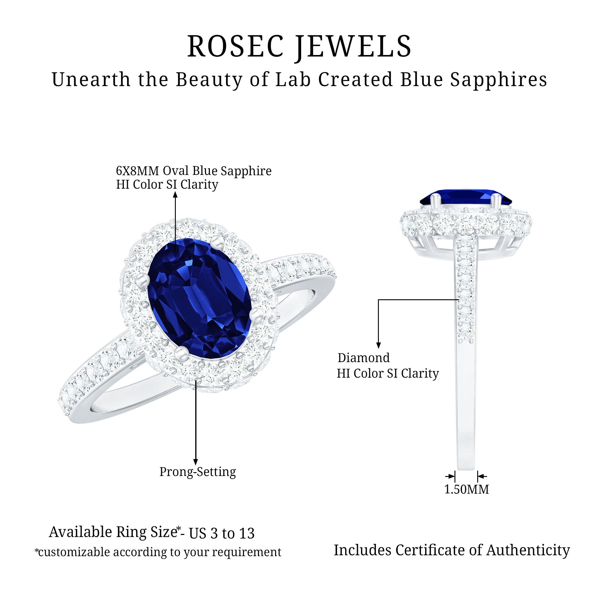 3 CT Created Blue Sapphire Engagement Ring with Diamond Classic Halo