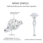 Make a bold statement on your special day with this exquisite Moissanite Engagement Ring. Featuring a stunning round cut moissanite set in a secure prong setting at the center surrounded by a halo, this ring is elegantly adorned with more shimmering dainty moissanite on a vintage crossover band. This Moissanite Halo Engagement Ring is a true statement piece, guaranteed to capture the attention of everyone around you and make your special day even more memorable.