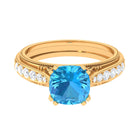 3 CT Cushion Cut Swiss Blue Topaz Vintage Engagement Ring with Side Stones