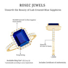Experience the allure of a solo statement piece with our Halo Engagement Ring. The captivating Emerald Cut Lab Created Blue Sapphire takes center stage in a graceful prong setting, complemented by a mesmerizing Diamond halo and side stones, making it the perfect gemstone choice for your special day. Embrace the modern twist of this Created Blue Sapphire Solitaire Engagement Ring, where elegance and uniqueness unite in perfect harmony.