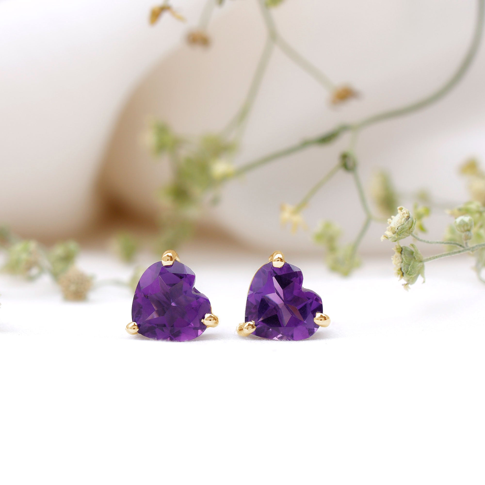 3 CT Heart Shape Amethyst Solitaire Stud Earrings in Gold