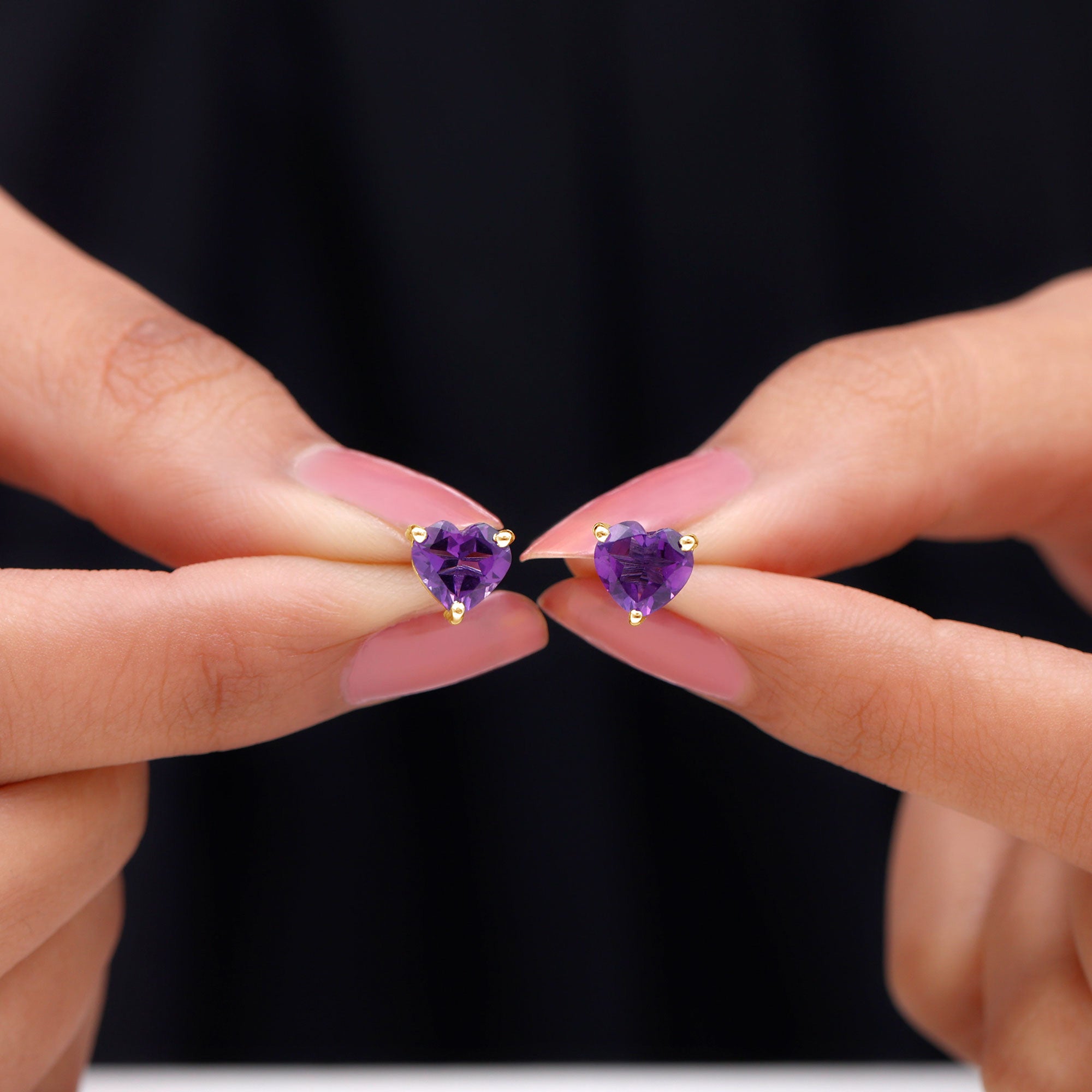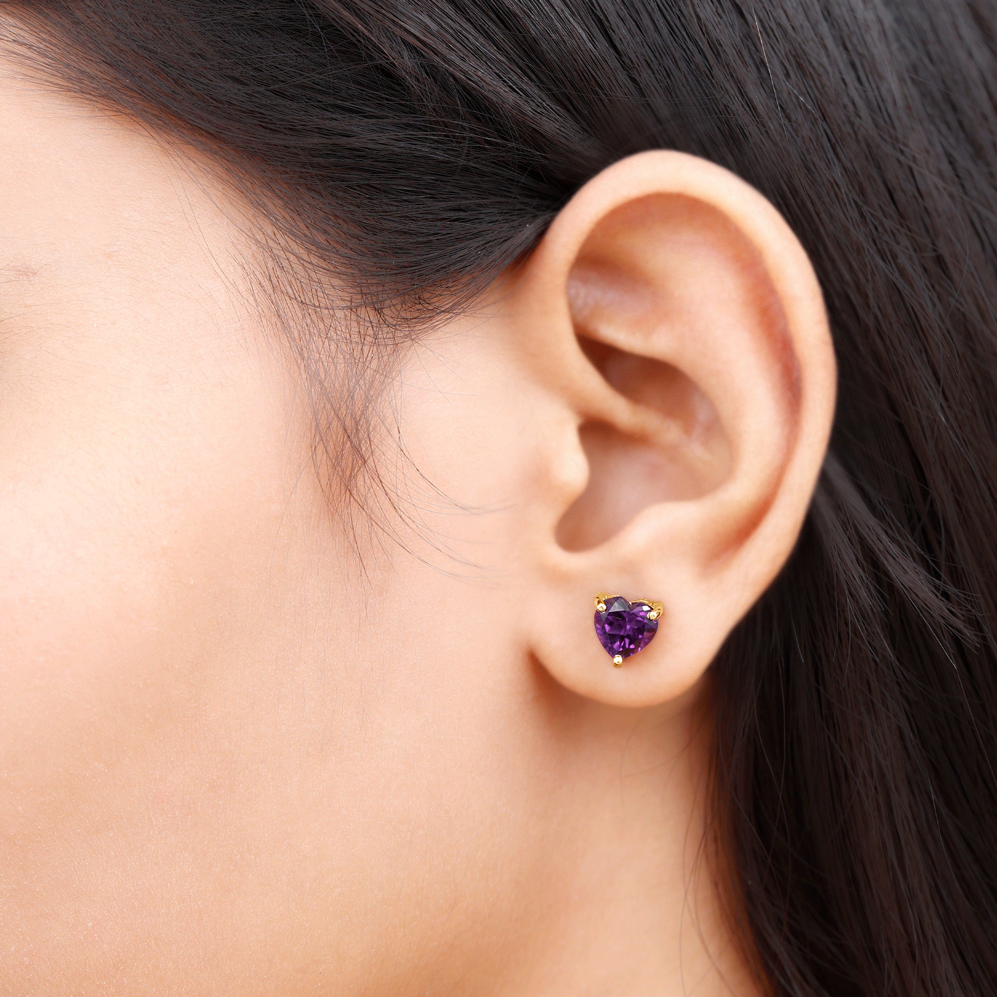 Win hearts when you flaunt these Stud Earrings embellished with a 7 MM Heart Shape Amethyst Solitaire which will take your style a notch higher.