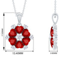 This exquisite Heart-Shaped Created Ruby Gemstone is set in a Prong Setting and surrounded by a delicate Diamond Flower Pendant that exudes sheer elegance. The Created Ruby Floral Pendant Necklace is a versatile piece worn as an everyday accessory or as office wear jewelry.