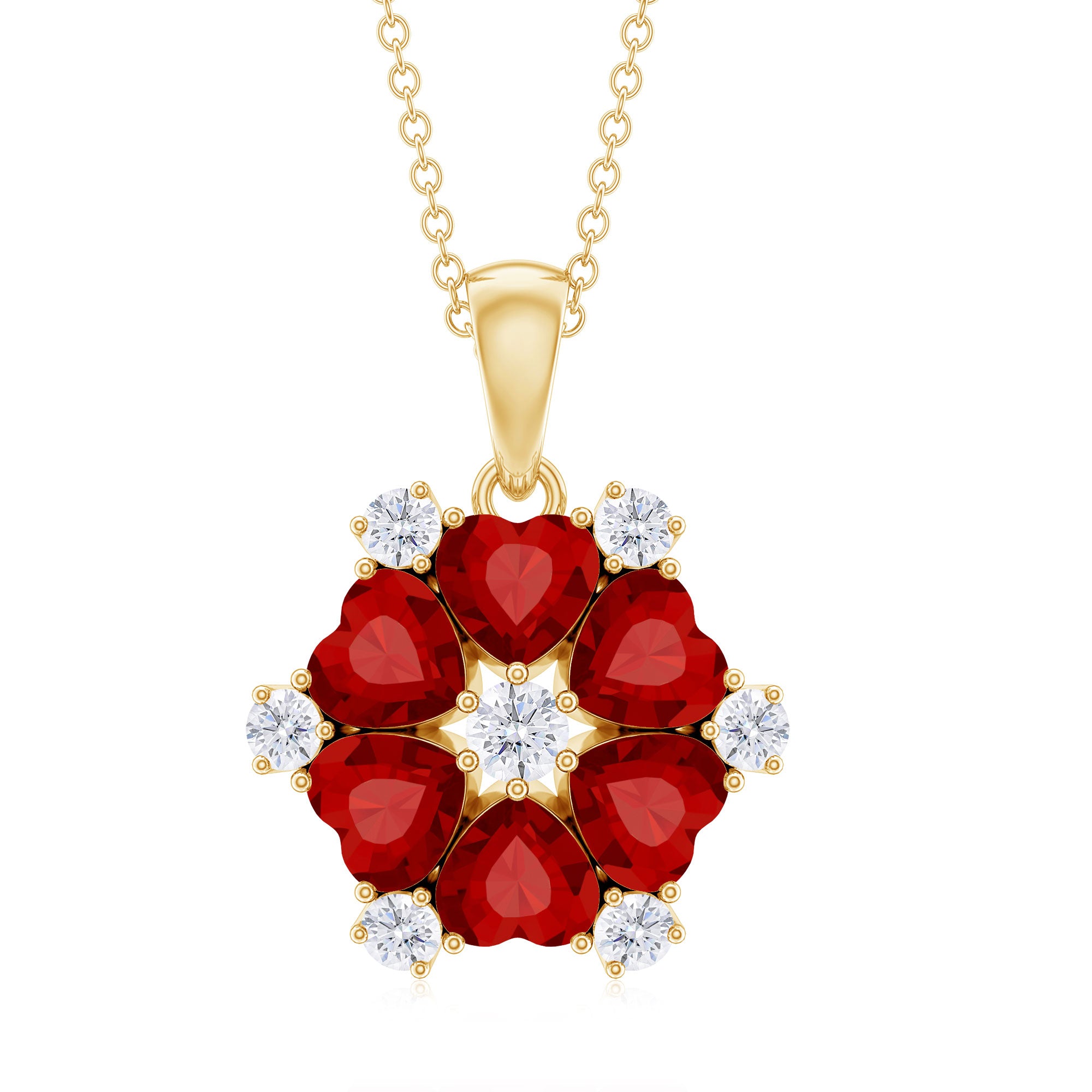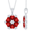 3 CT Heart Shape Created Ruby and Diamond Flower Pendant