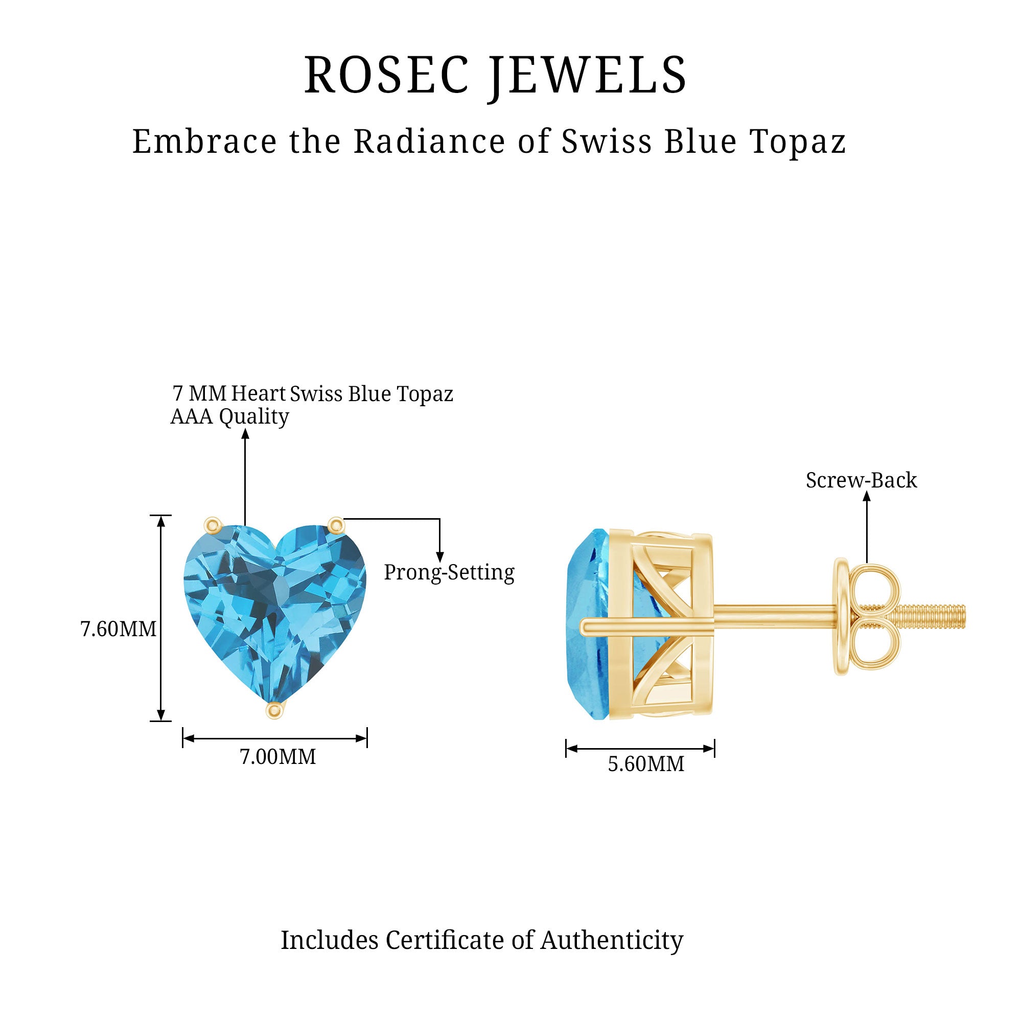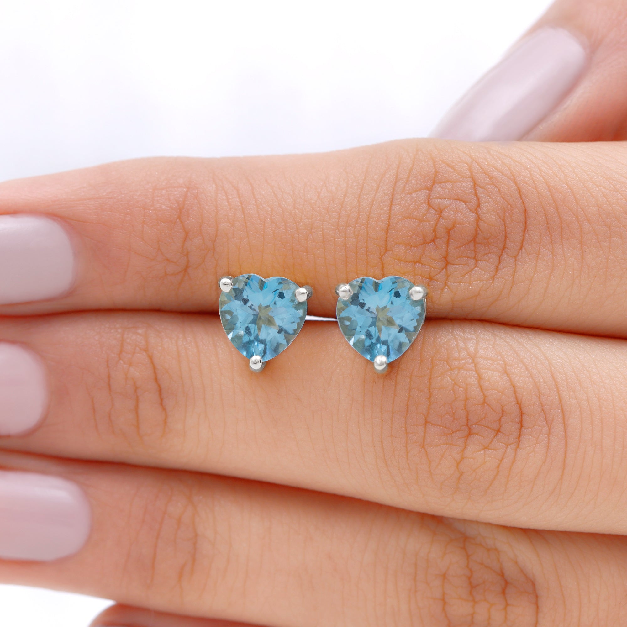 Win hearts when you flaunt these Stud Earrings embellished with a 7 MM Heart Shape Swiss Blue Topaz Solitaire in prong setting which will take your style a notch higher.