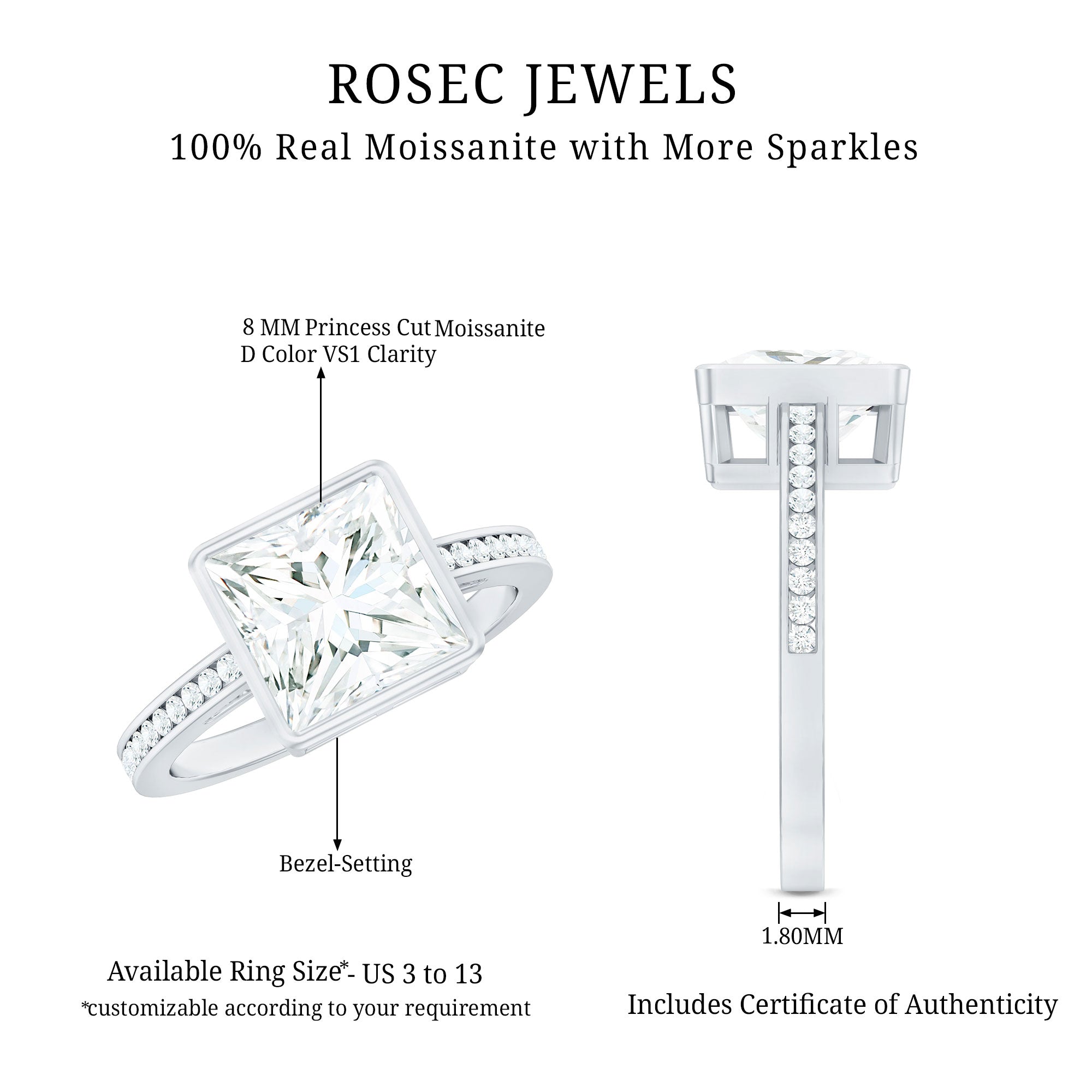 3 CT Moissanite Bezel Set Engagement Ring with Channel Set