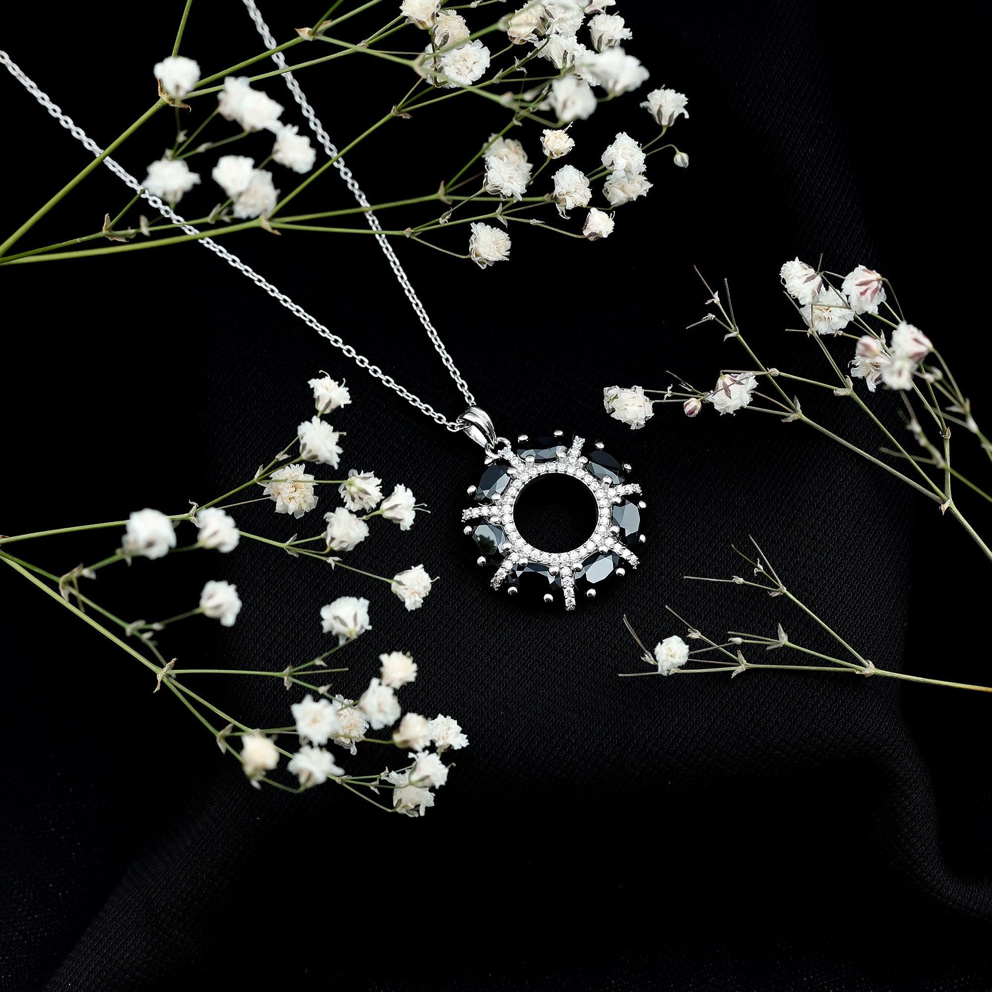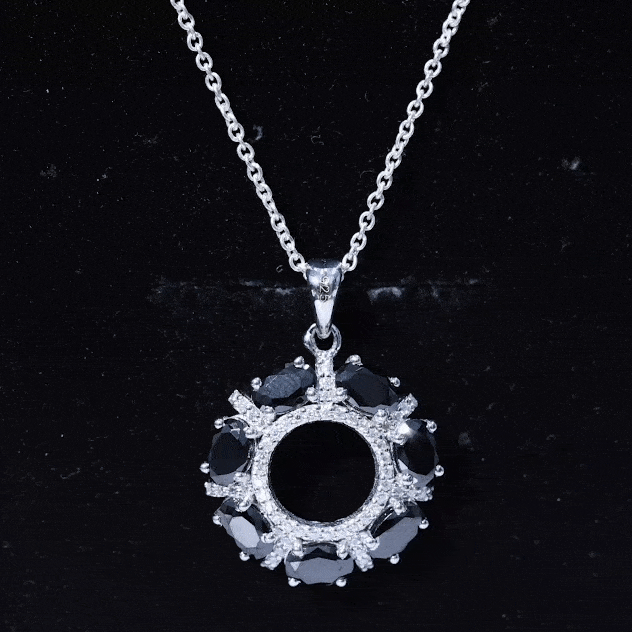 Black Spinel - Brilliant Cut Black Spinel Gemstone exhibits AAA Quality and possess vibrant color. Semi-Precious stone summons calmness, balance and adaptability. It is Natural and Certified, helps in balancing yin and yang and bring determination to the wearer. It is moderately Durable and it has captivating luster which keeps the desirability of this stone intact. Moissanite - D-VS1 Quality exhibited by Brilliant Cut Moissanite give justice to its incredible value. Moissanite summons beauty, attractiveness and unbreakable love. It is Certified and helps in bringing success and luxury to the wearer. Its Durability and Luster is enhanced by Lab Created Treatment, to further make it a captivating and desirable gem.