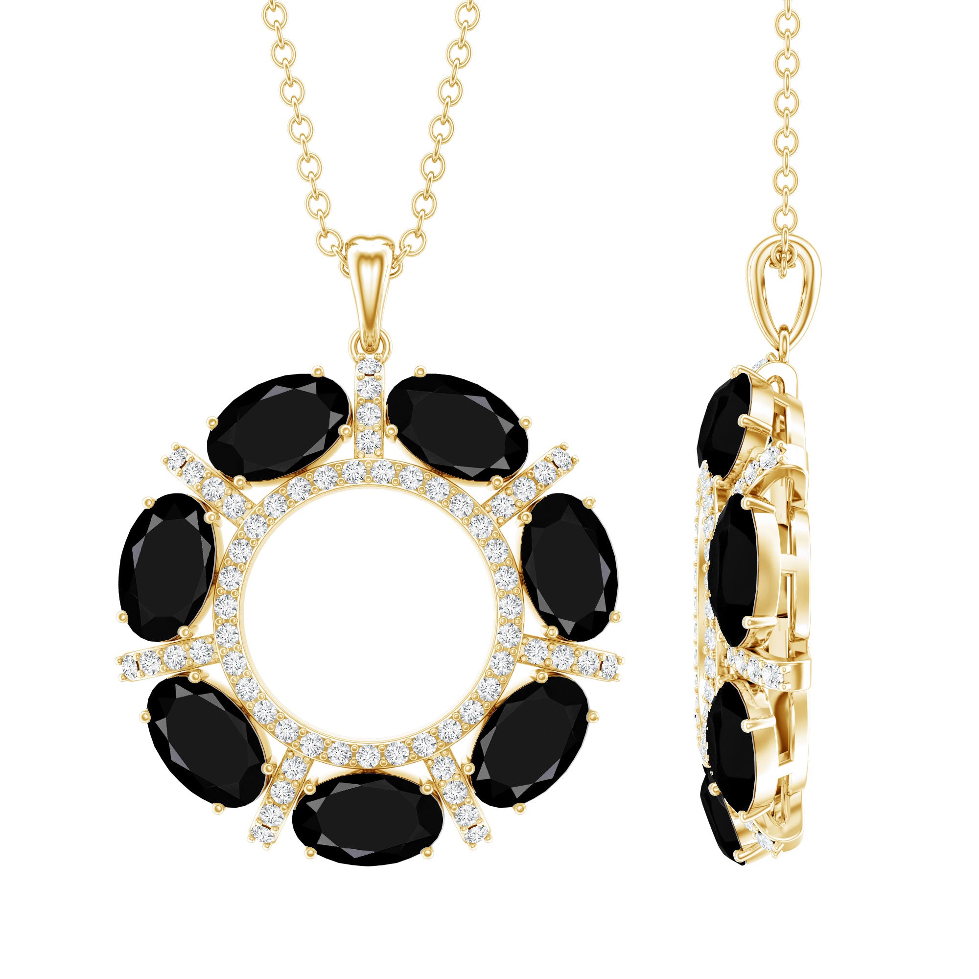 3 CT Oval Cut Black Spinel Elegant Pendant with Moissanite