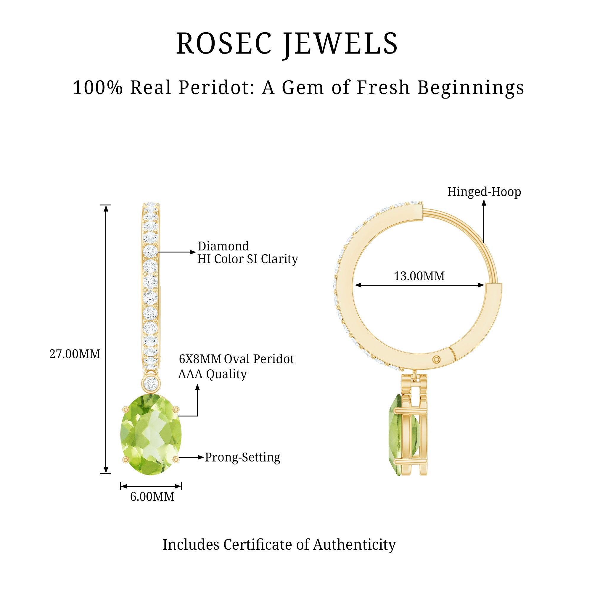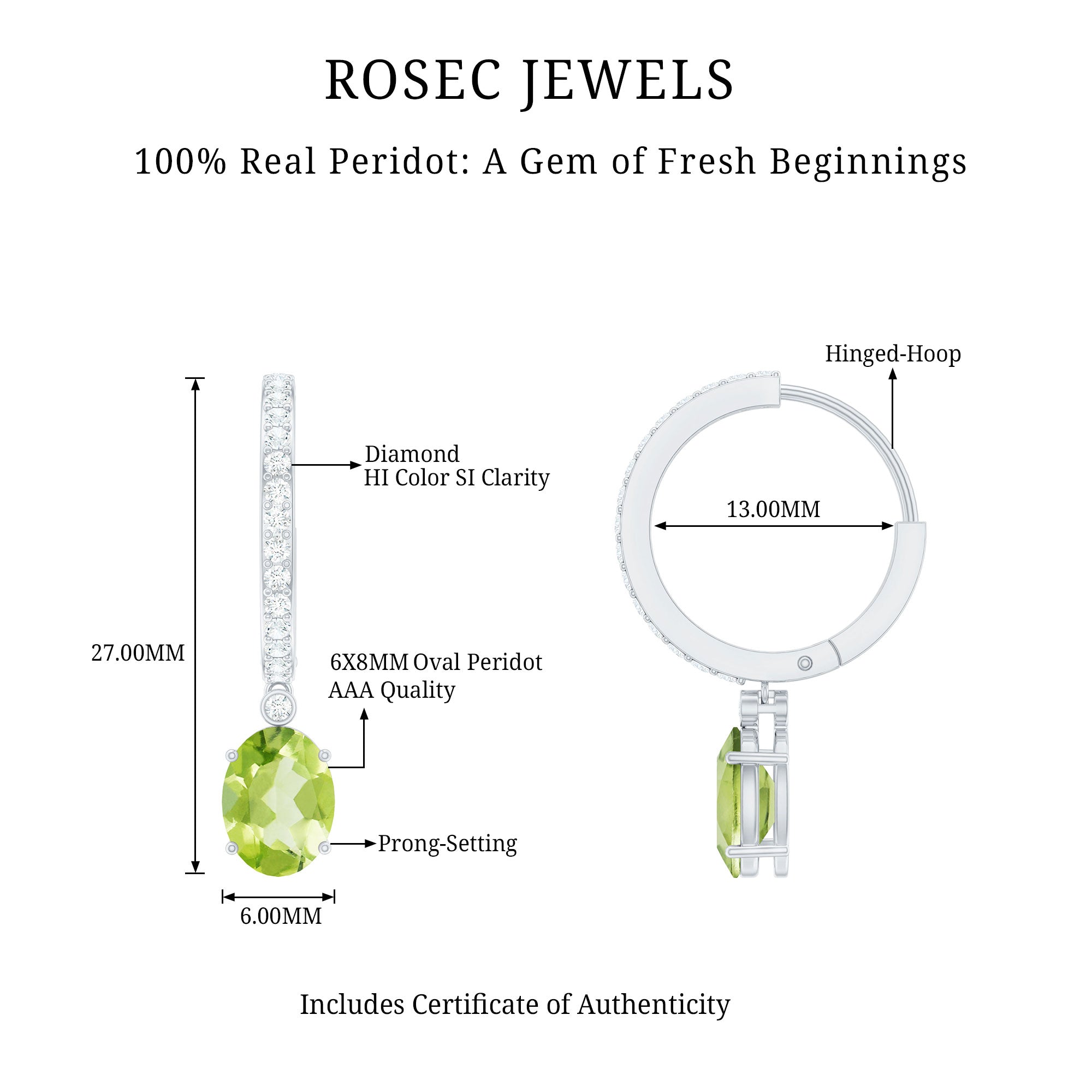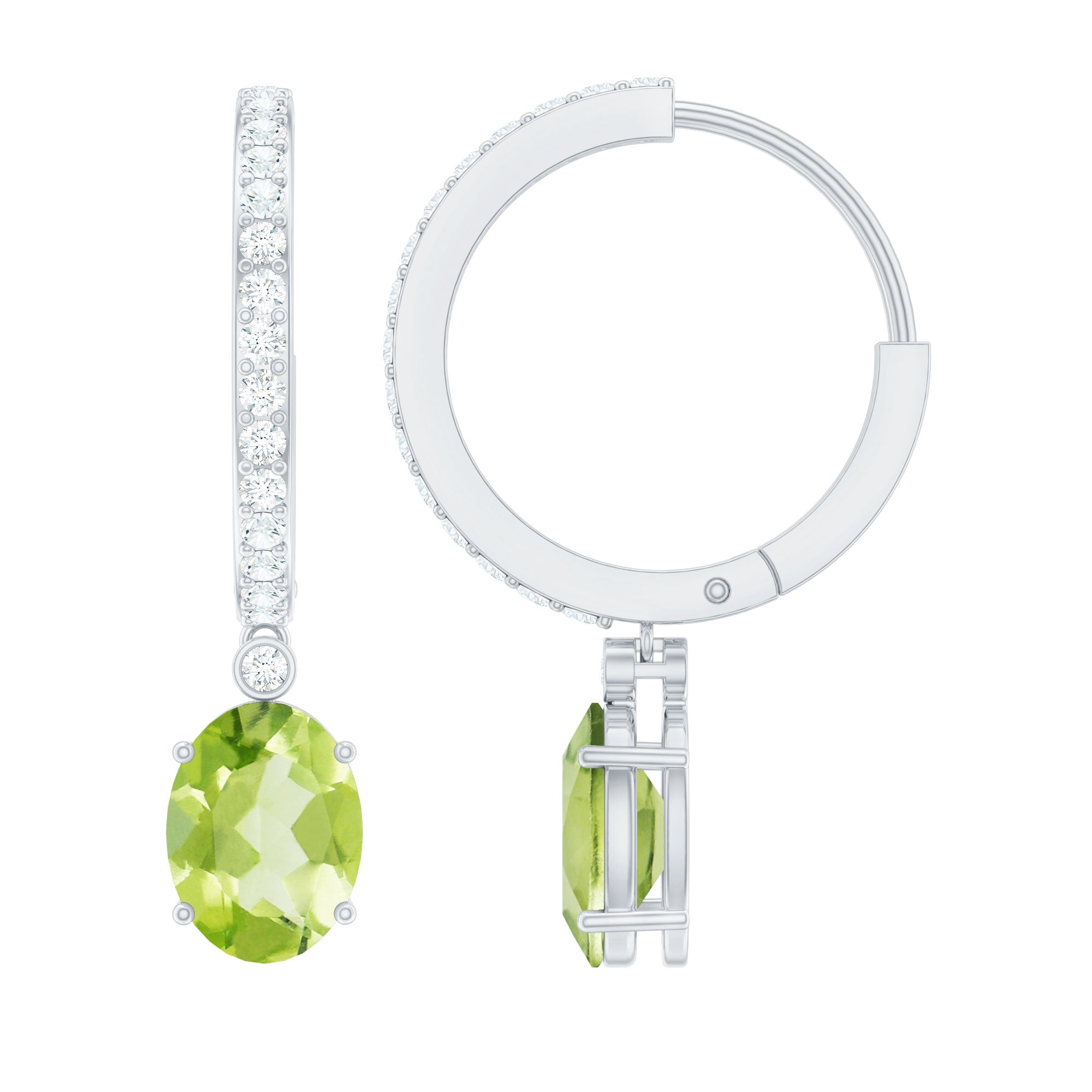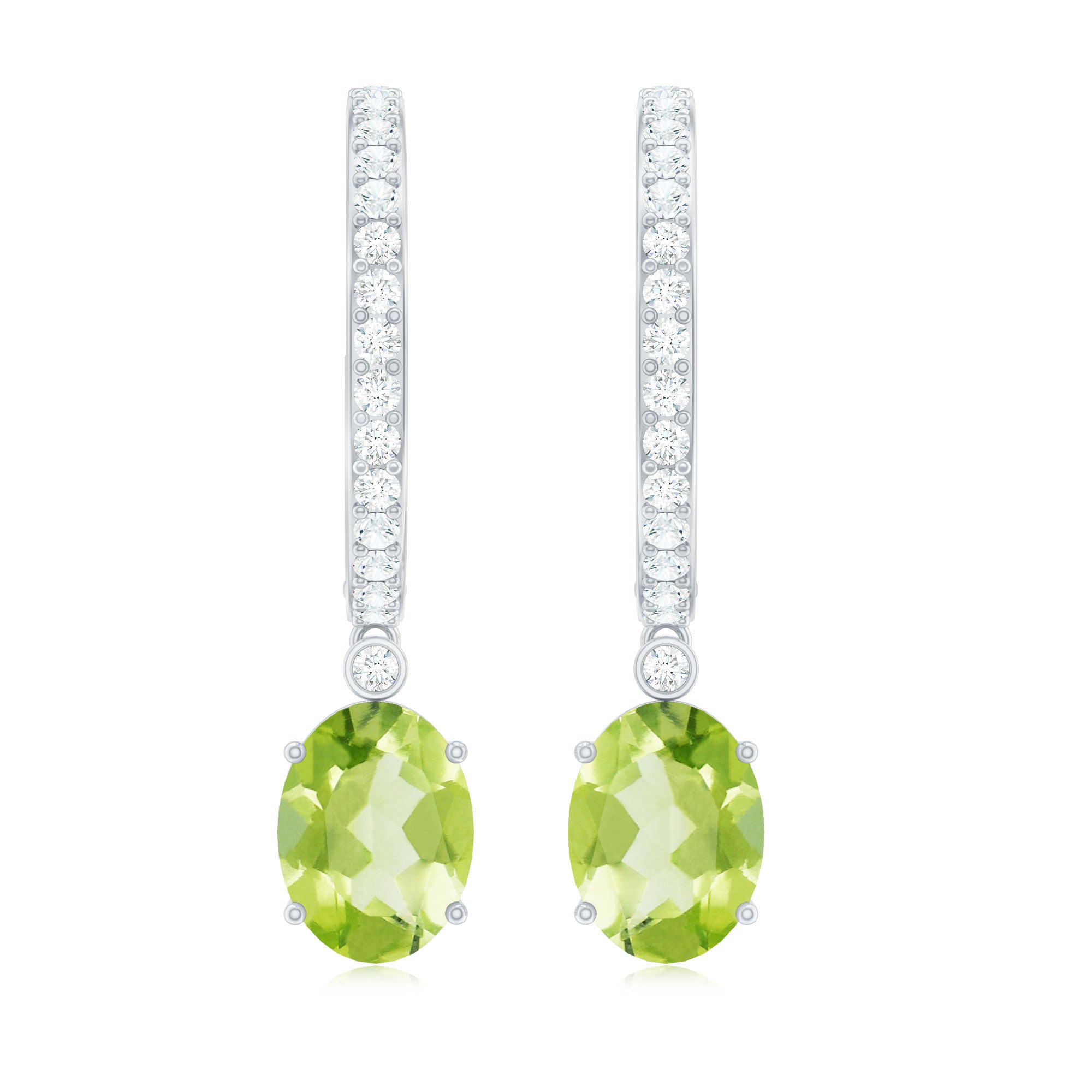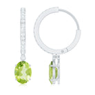 3 CT Oval Peridot Hoop Drop Earrings with Diamond
