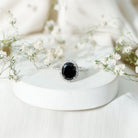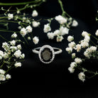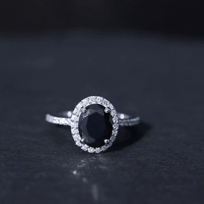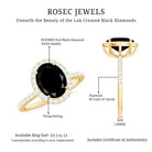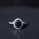 3 CT Oval Shape Created Black Diamond and Diamond Halo Engagement Ring