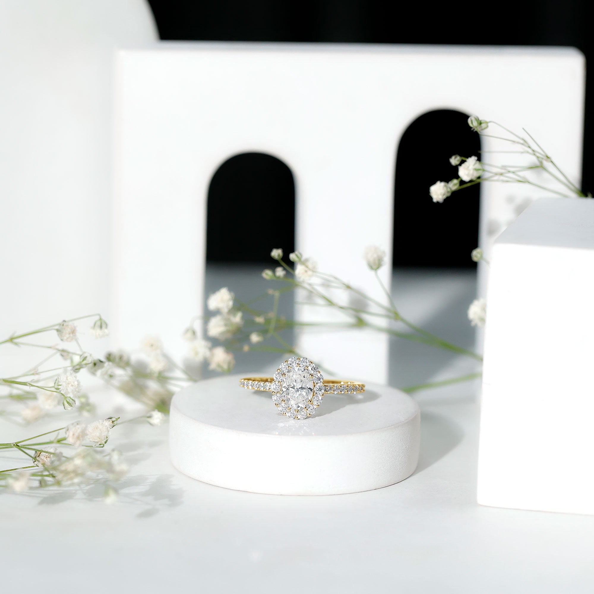 3 CT Oval Simulated Diamond Classic Halo Ring in Gold