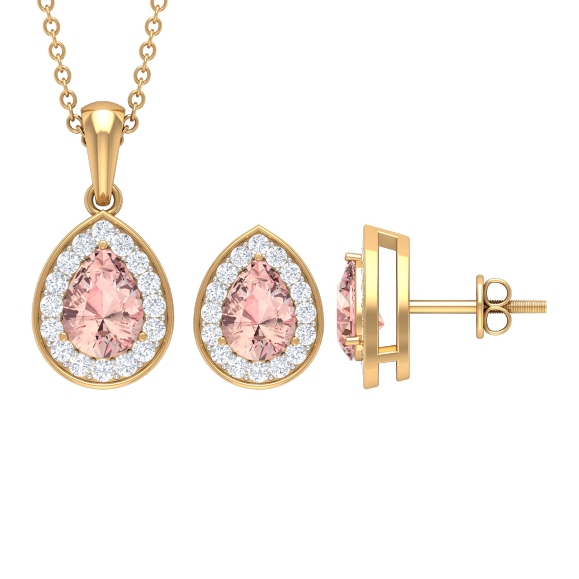 3 CT Pear Cut Peach Morganite Jewelry Set with Moissanite