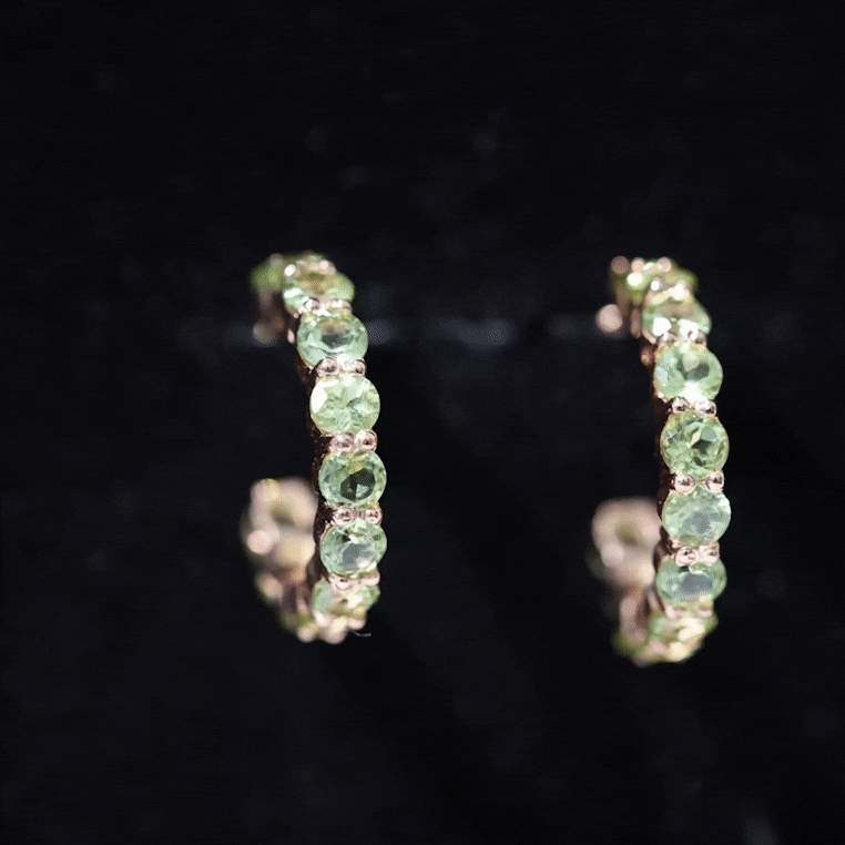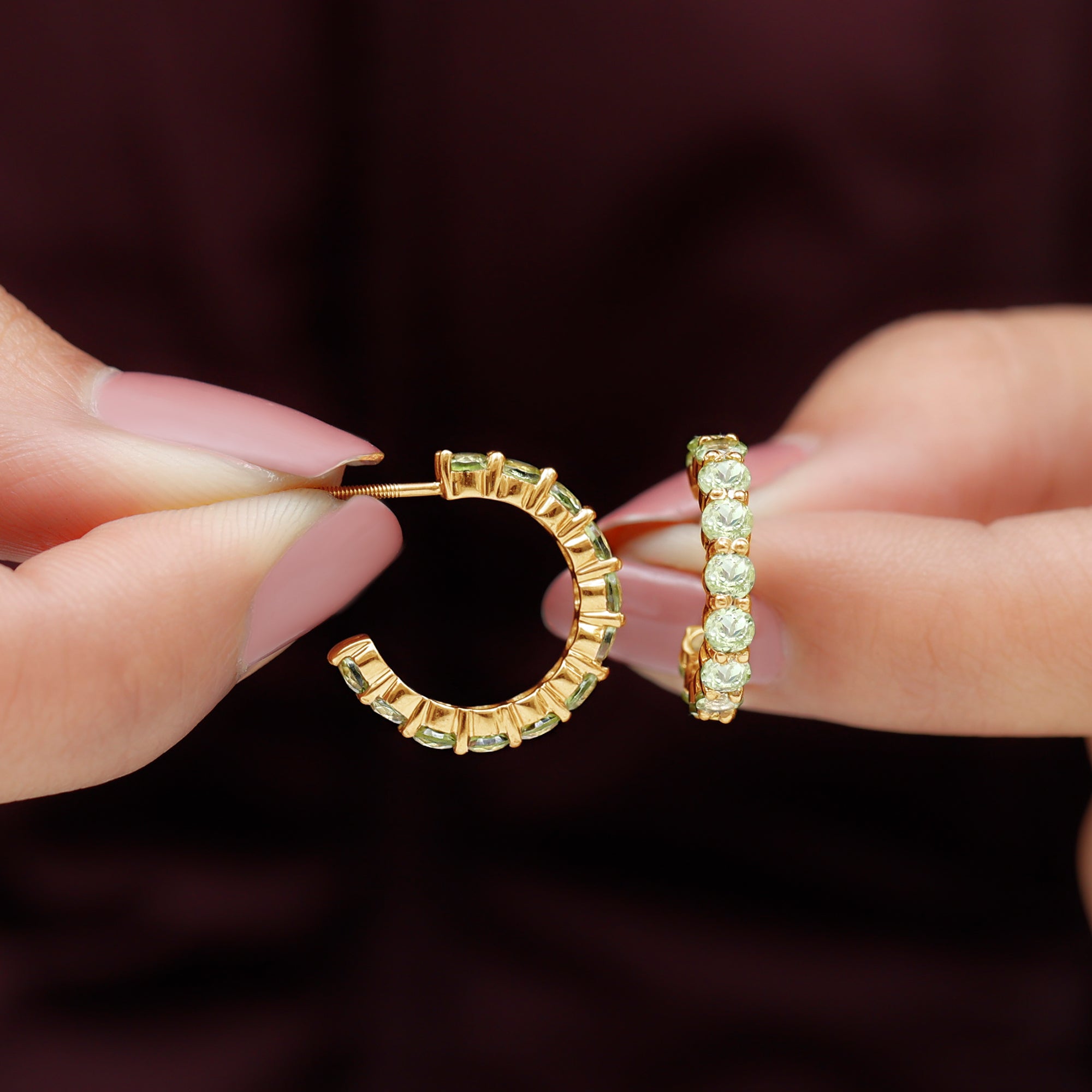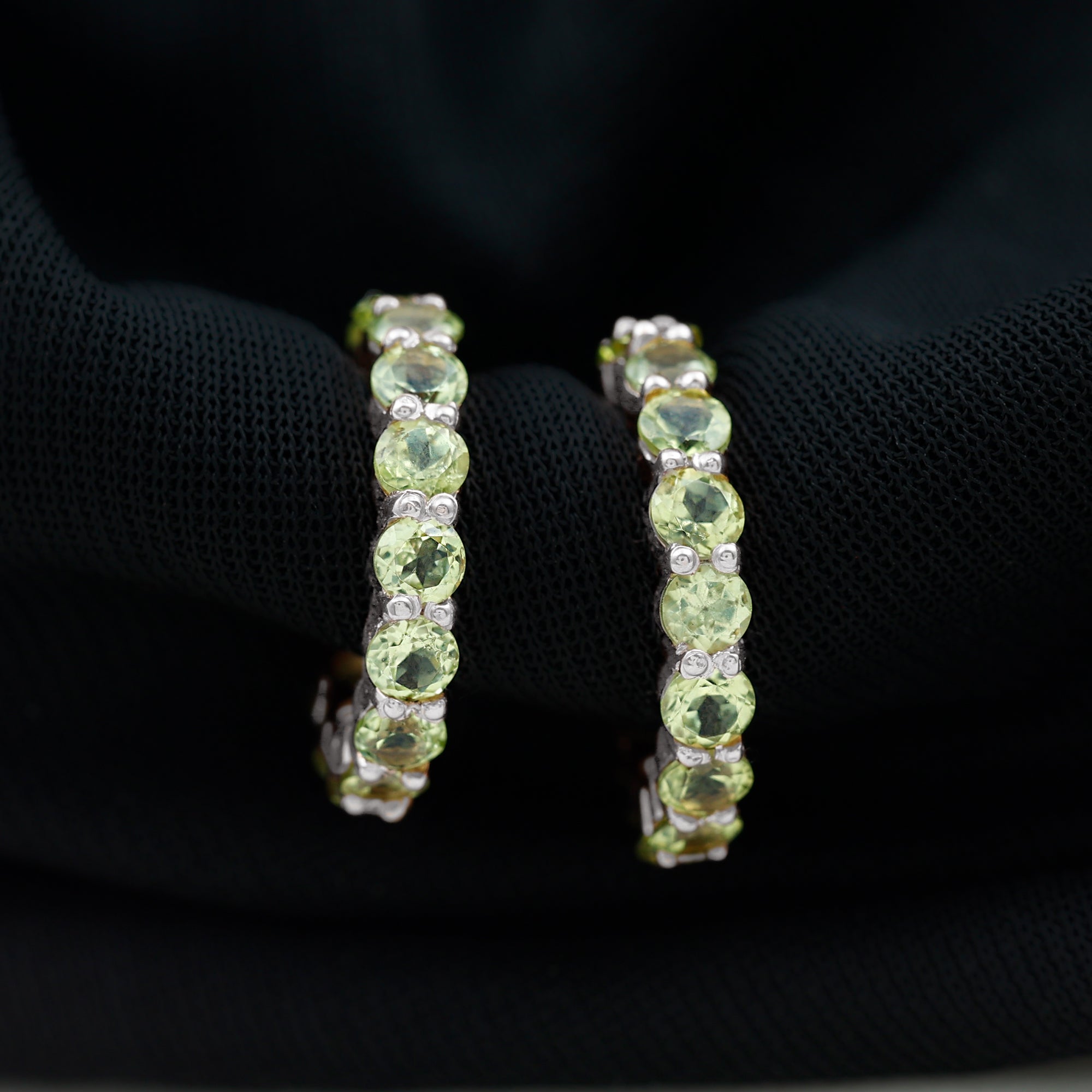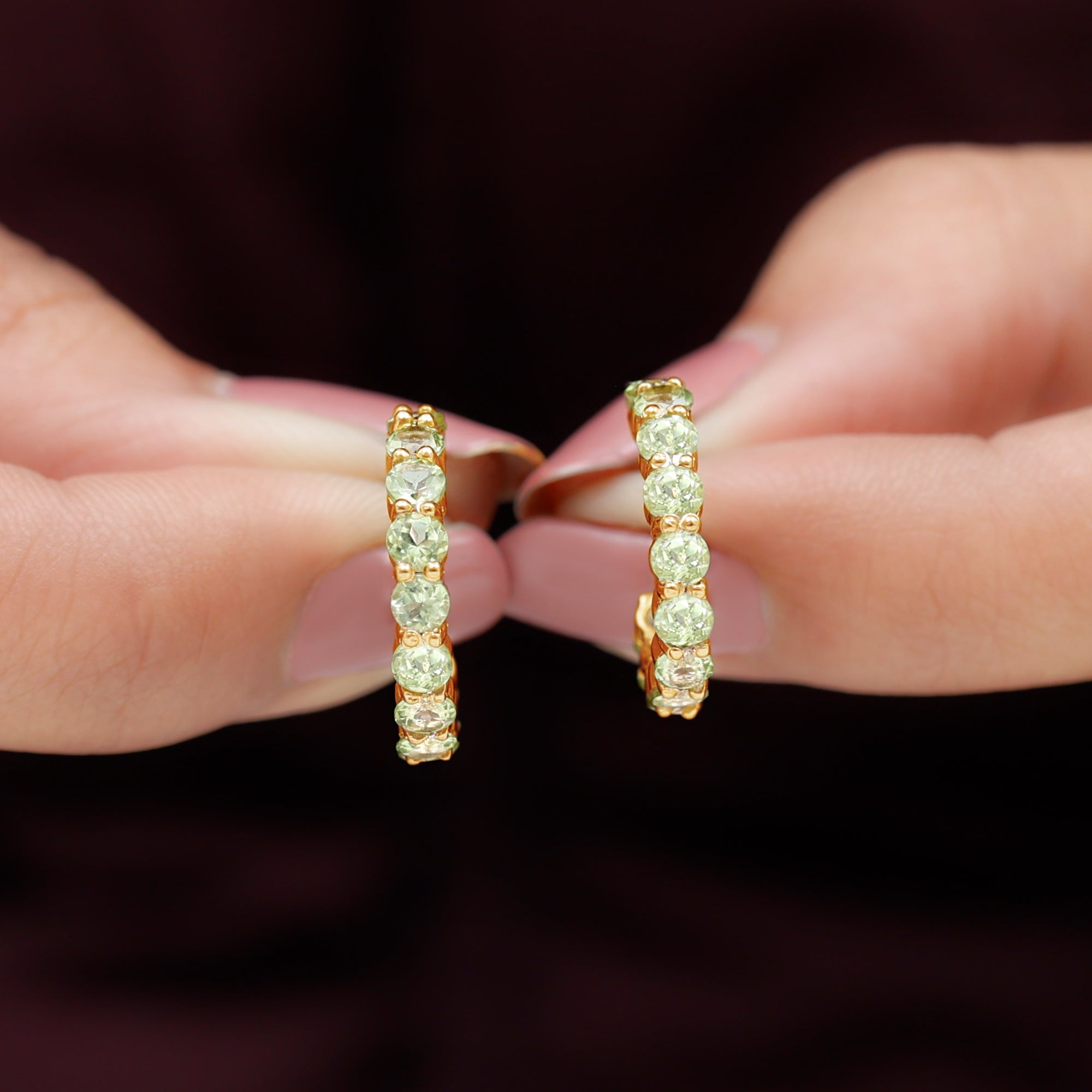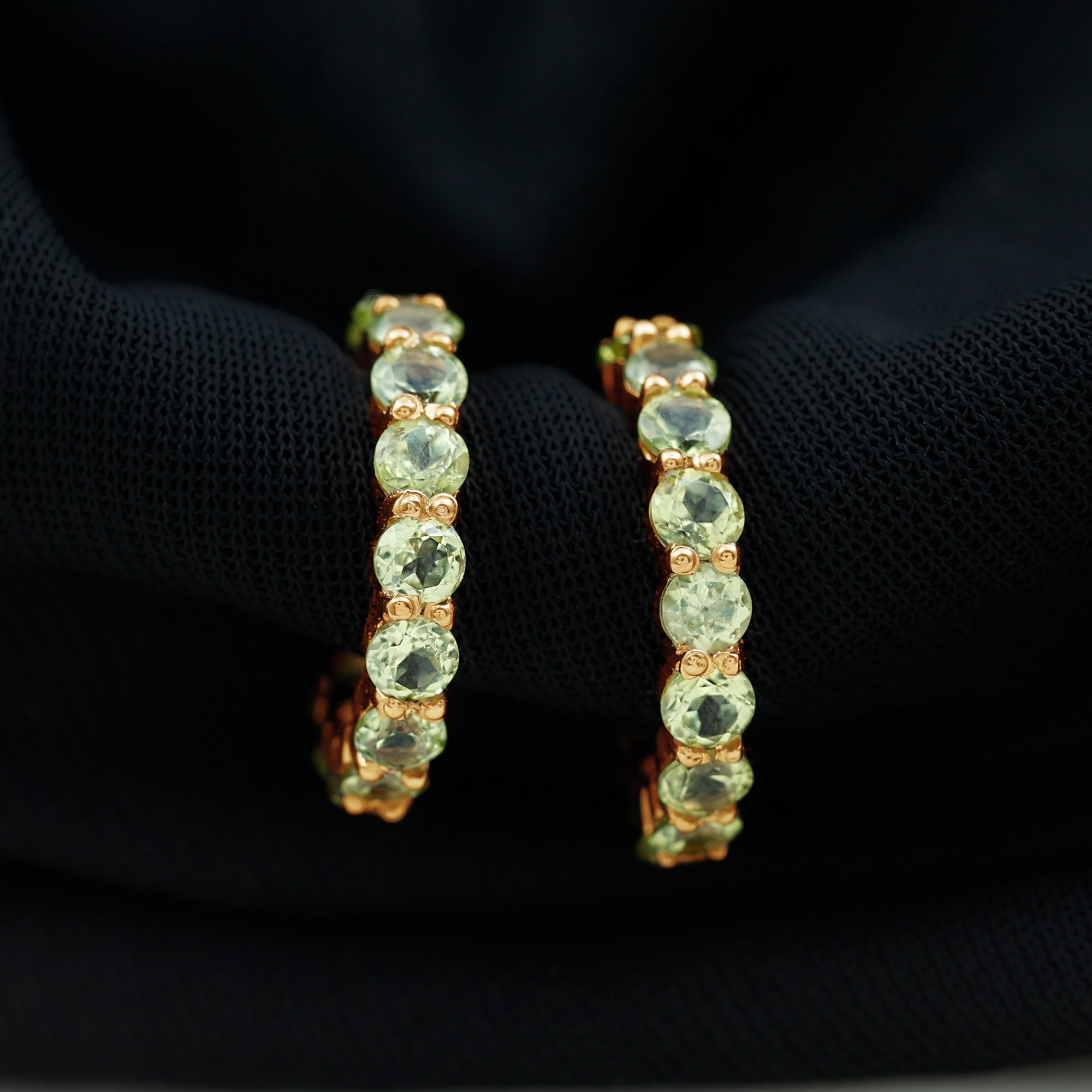 Add charm to your look with these Eternity Hoop Earrings are embellished with Round Shape Peridot which will complement your style perfectly.