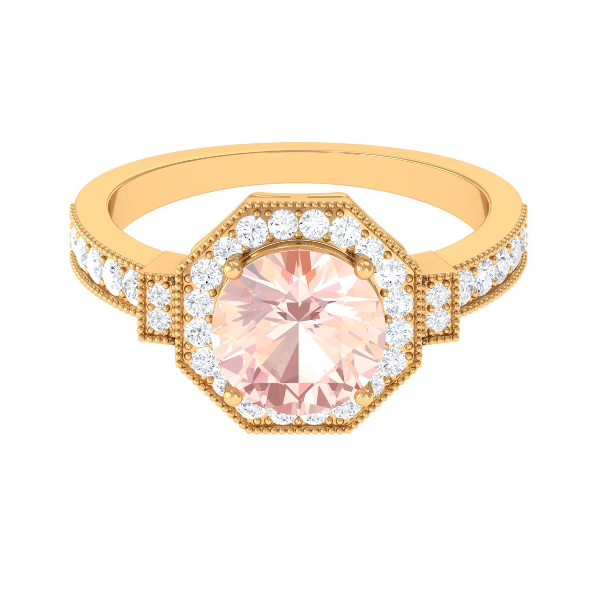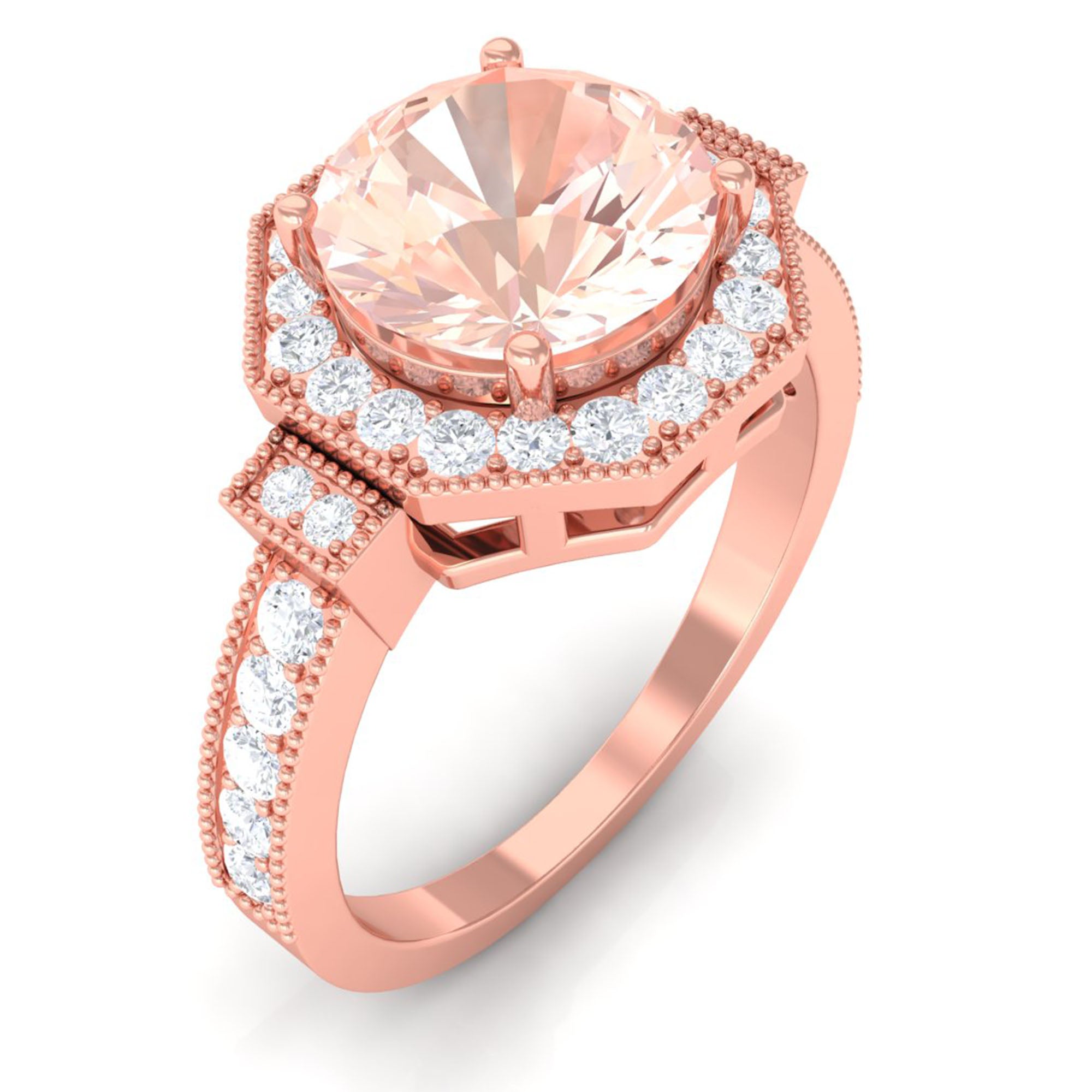 3 CT Vintage Style Morganite and Moissanite Engagement Ring in Gold