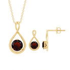 Dazzle in our Infinity Necklace Set featuring a 6 MM Round Cut Garnet Solitaire in a unique Infinity style Pendant and 4 MM Solitaires in Infinity Earrings, this classic Infinity Earrings and Necklace Set will add grace and elegance to your look.