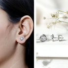3 Prong Set Solitaire Moonstone Swirl Stud Earrings