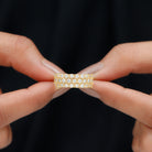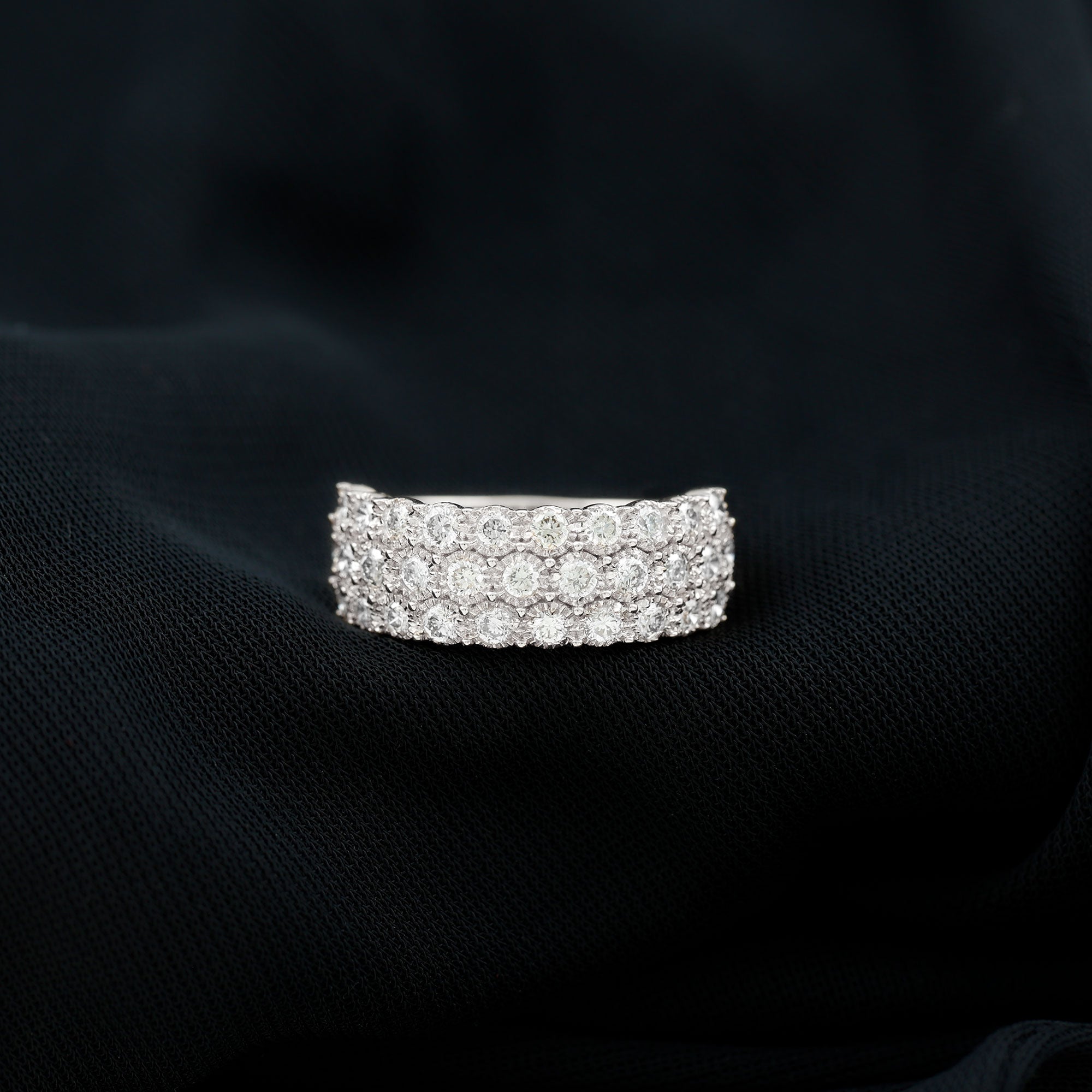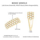 Mark special moments with a ring that shines with love and meaning. The 3 Row Diamond Wedding Band is designed to show the beauty of commitment and the joy of lasting memories. Three sparkling rows of round lab created diamonds sit gently on the top half of the band, held in detailed engraved bezel setting. Each stone catches the light with every move, adding a soft, glowing sparkle to your hand. The design forms a half eternity style, meaning the diamonds cover only the top part of the band. This gives the Thick Wedding Band a balance of beauty and comfort, perfect for wearing every day. Whether it is worn as a wedding band, an anniversary ring, or a gift to yourself, it brings a touch of elegance to any moment. This Wedding Anniversary Band features EF-VS quality lab grown diamonds, made in a way that is better for the planet and free from conflict. It is a lovely mix of bold and refined, simple and meaningful. Packed in a beautiful jewelry box, it is ready to bring a smile to someone's face. Perfect for marking love, growth, and everything in between, this Diamond Half Eternity Band is a reminder of every step you have taken together.