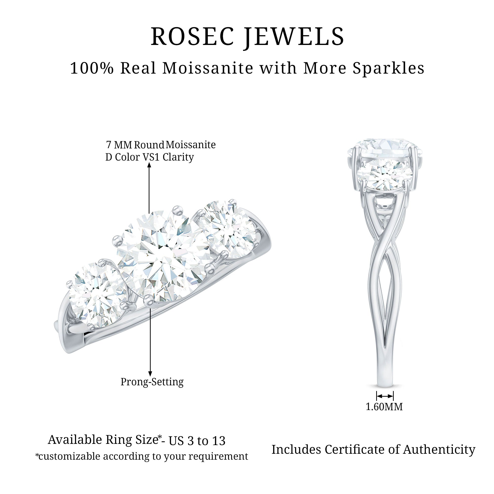 A reflection of love’s journey, this Moissanite 3 Stone Ring captures the essence of your relationship in a design that feels both meaningful and elegant. At its heart, a 7 MM round cut moissanite sparkles brilliantly in secure prong setting. On either side, two 5 MM moissanites add perfect symmetry, representing the past, present, and future of your bond. Together, the trio tells a story of shared memories, cherished moments, and the promise of all that lies ahead. The graceful crossover bands bring a modern touch to this classic style, symbolizing strength, unity, and everlasting love. Each D color and VS1 clarity moissanite reflects incredible brilliance, giving the Criss Cross Engagement Ring a luminous presence from every angle. Designed with attention to detail, it combines timeless appeal with a contemporary twist, making it an ideal choice for engagements or anniversaries. Crafted for comfort as much as beauty, the smooth setting ensures an effortless fit that feels natural on the hand. Thoughtfully designed and beautifully finished, this Moissanite Engagement Ring captures love’s enduring story with simplicity and elegance.