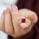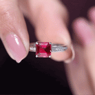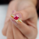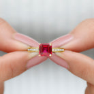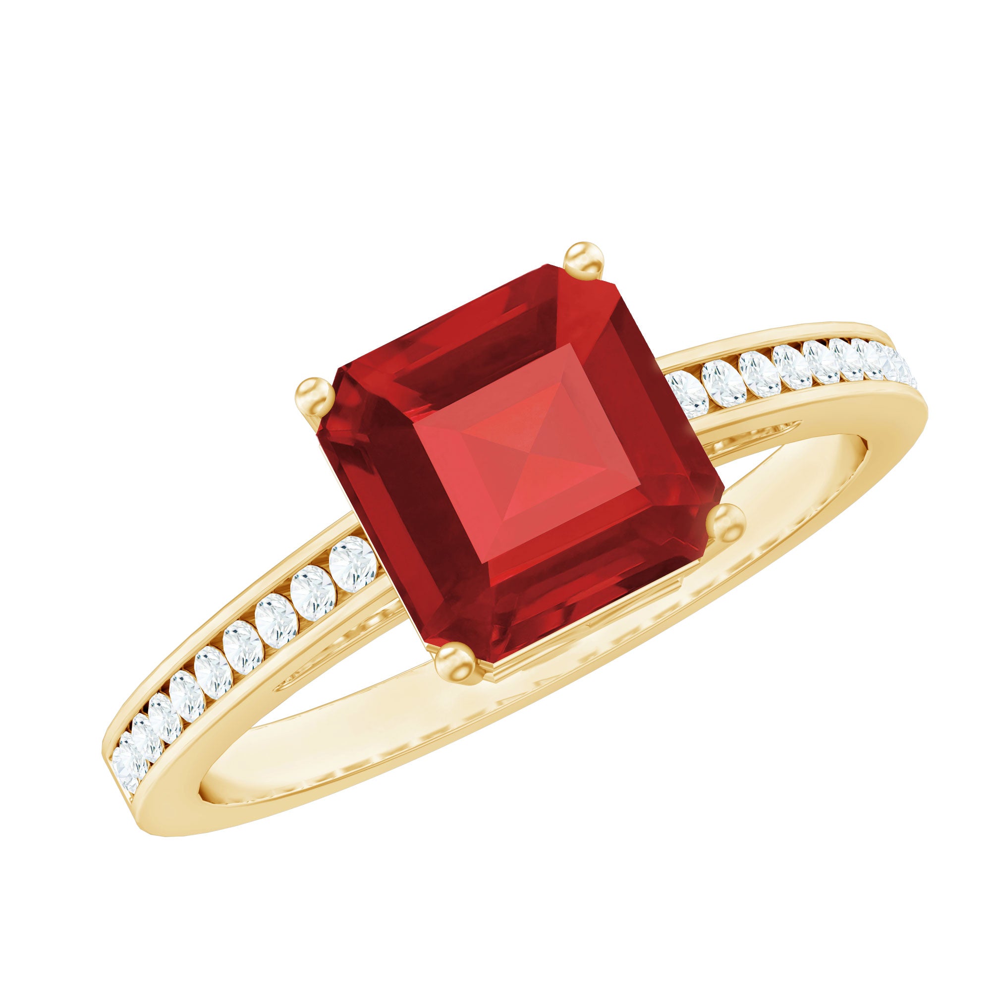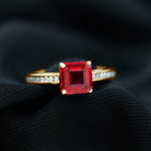 4.25 CT Asscher Cut Created Ruby Solitaire Engagement Ring with Diamond Side Stones