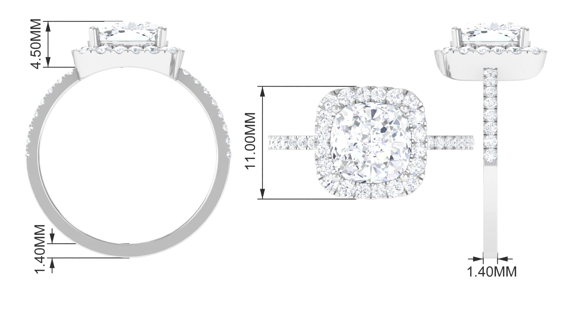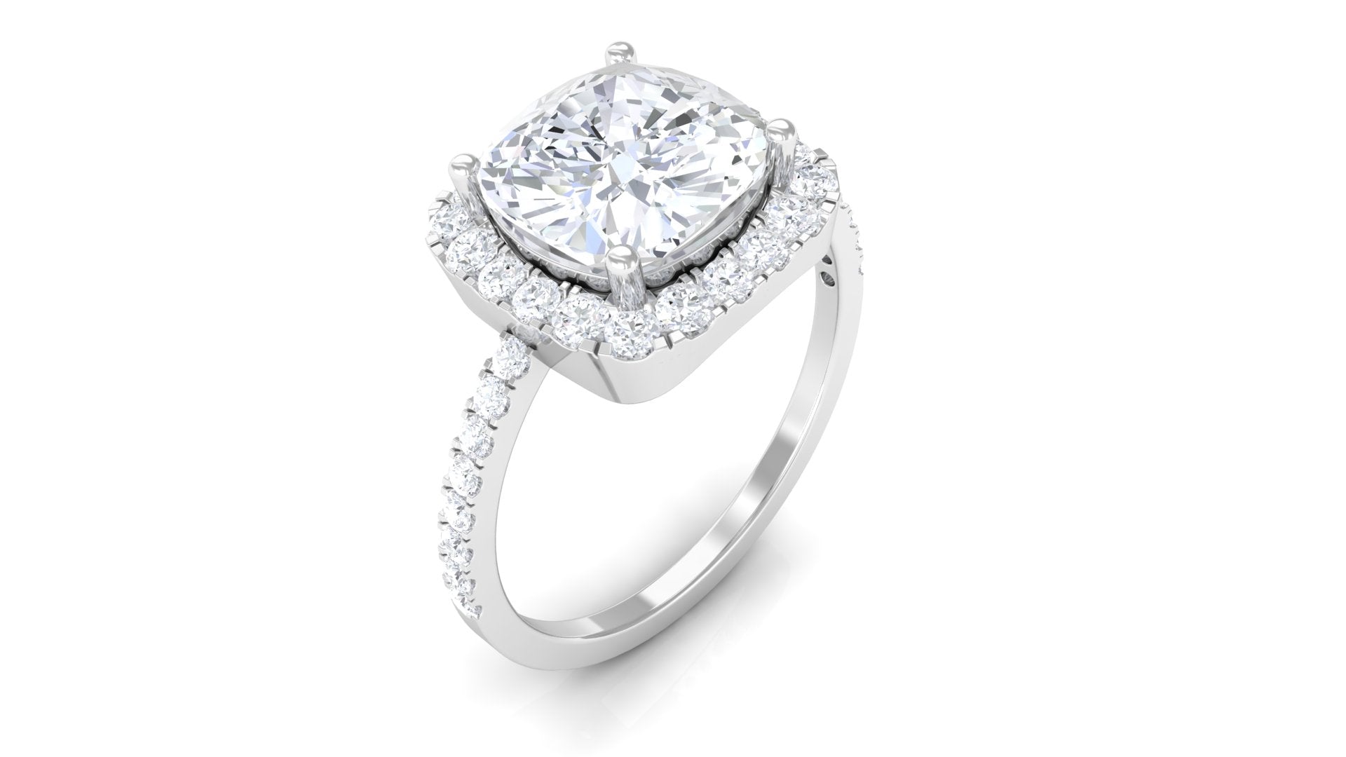 4.25 CT Cushion Cut Zircon Engagement Ring with Halo