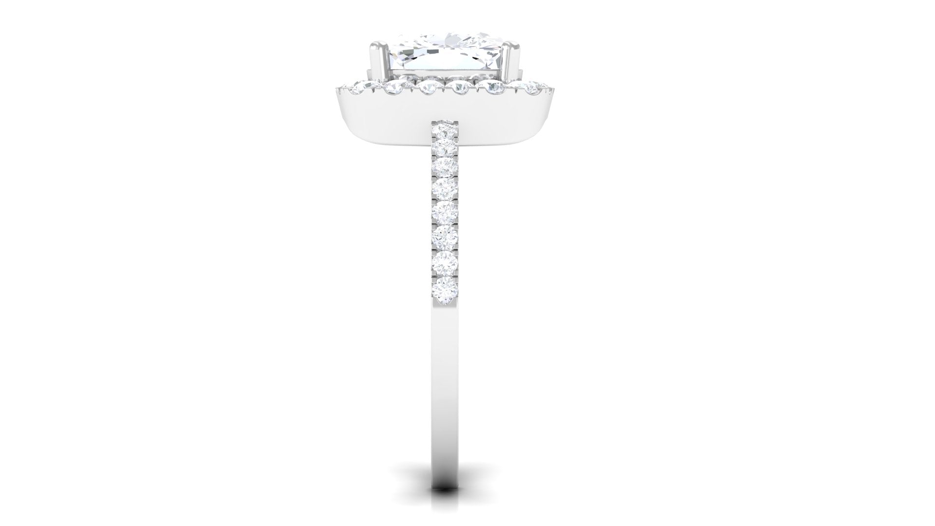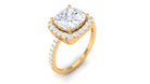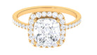 On the very special day of your life, give this amazing and elegant ring to your beloved and add more spark into her life. Adorn with Cushion Cut Cubic Zirconia set as solitaire in prong setting with halo and side stones, sculpted in Gold. This Simulated Diamond Engagement Ring is perfect for the occasion and surely make your lady happy.