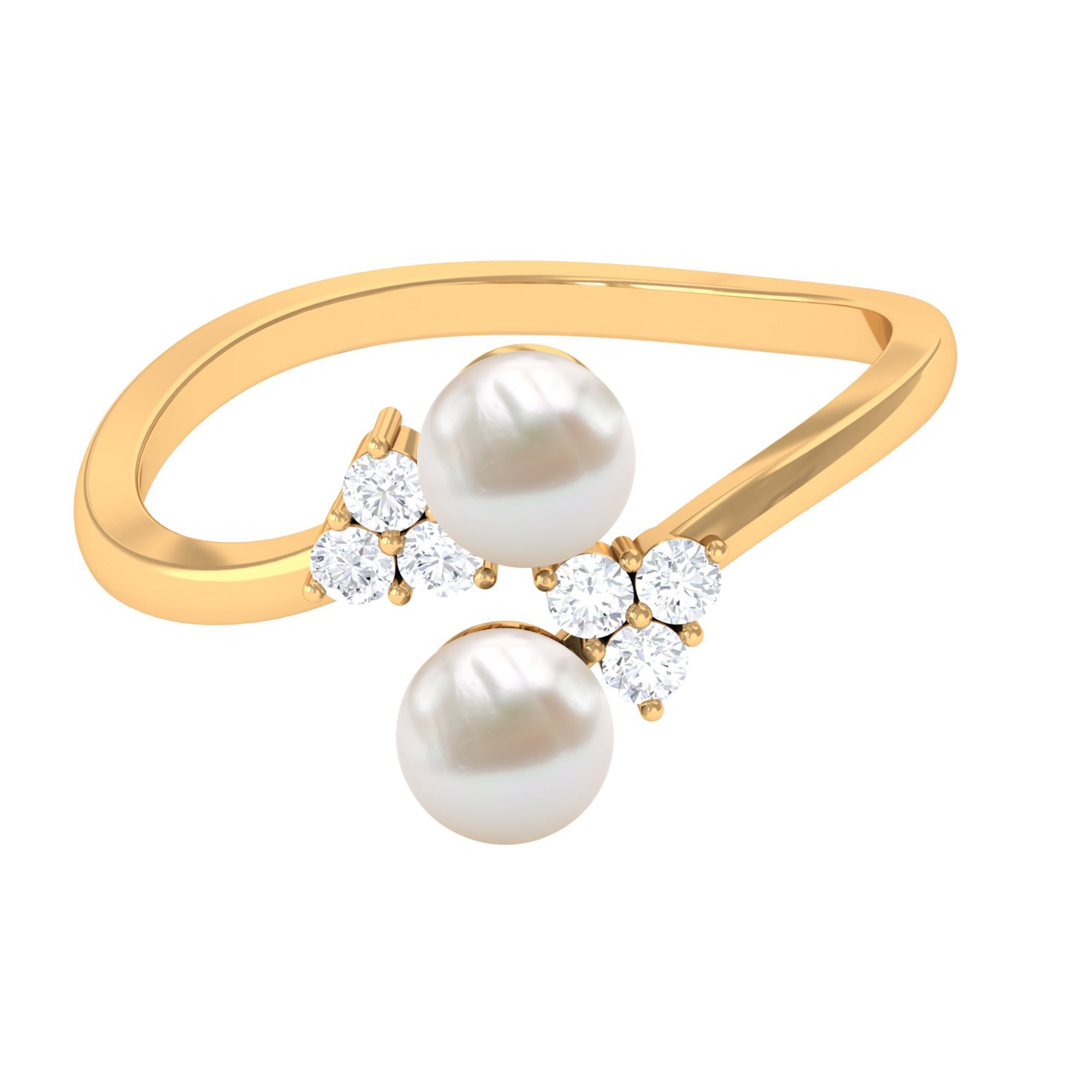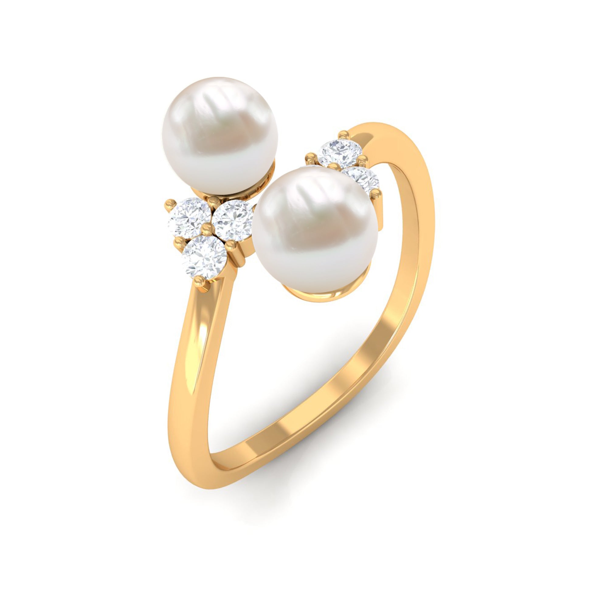 4.25 CT Freshwater Pearl Wrap Ring with Diamond Trio