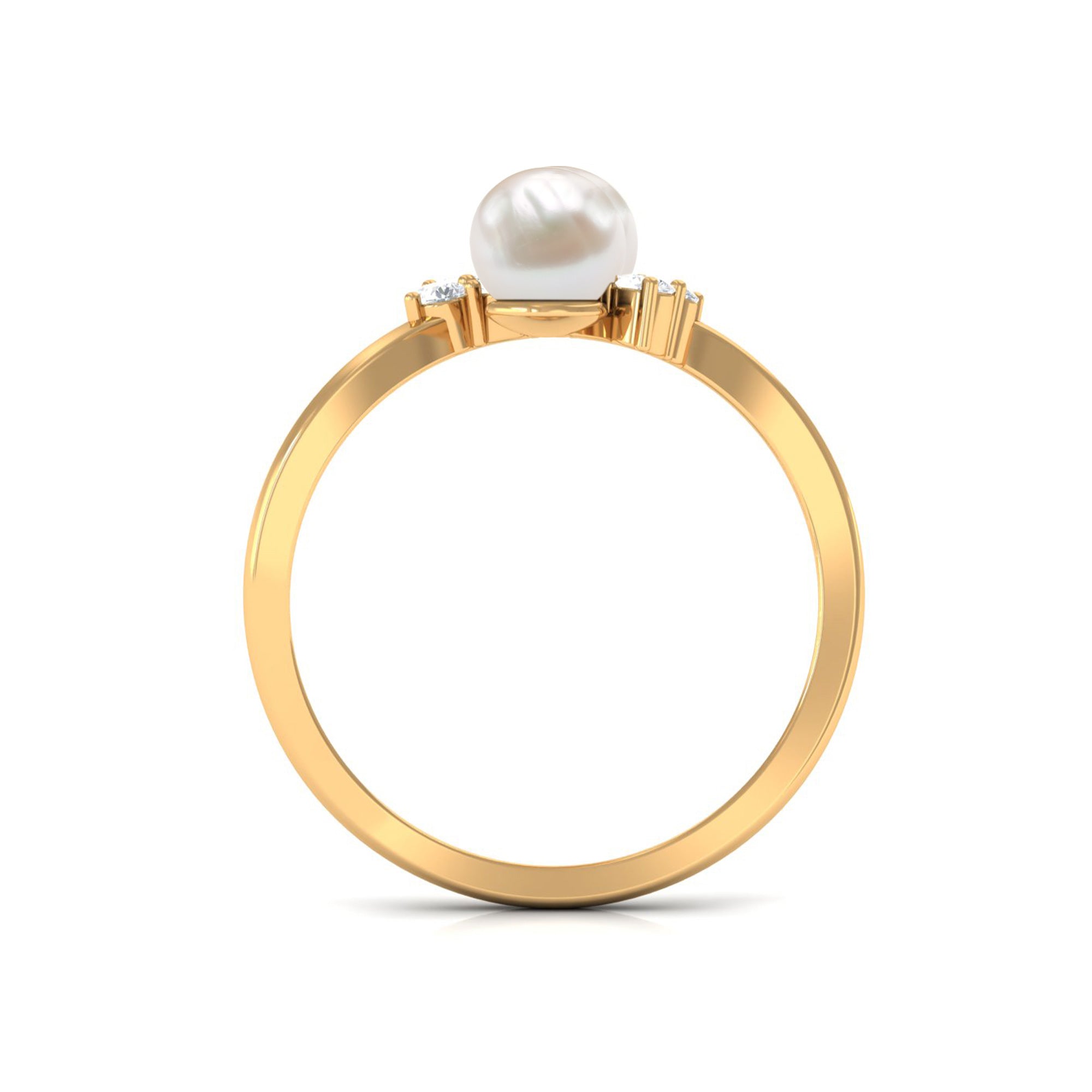 Stylish and chic Freshwater Pearl and Diamond Ring is an enchanting piece of fine jewelry. Freshwater Pearl exhibits AAA Quality and possess subtle color. Semi Precious June Birthstone summons faith and innocence. It is Natural and Certified, helps in enhancing personal integrity and grow sincerity of the wearer. The extremely durable nature and luster makes it a captivating and desirable gem. Diamond- HI-SI Quality exhibited by Brilliant Cut Diamond give justice to its incredible value. Diamond summons beauty, attractiveness and unbreakable love. It is Certified and helps in bringing success and luxury to the wearer. Its Durability and Luster is enhanced by Lab Created Treatment, to further make it a captivating and desirable gem.