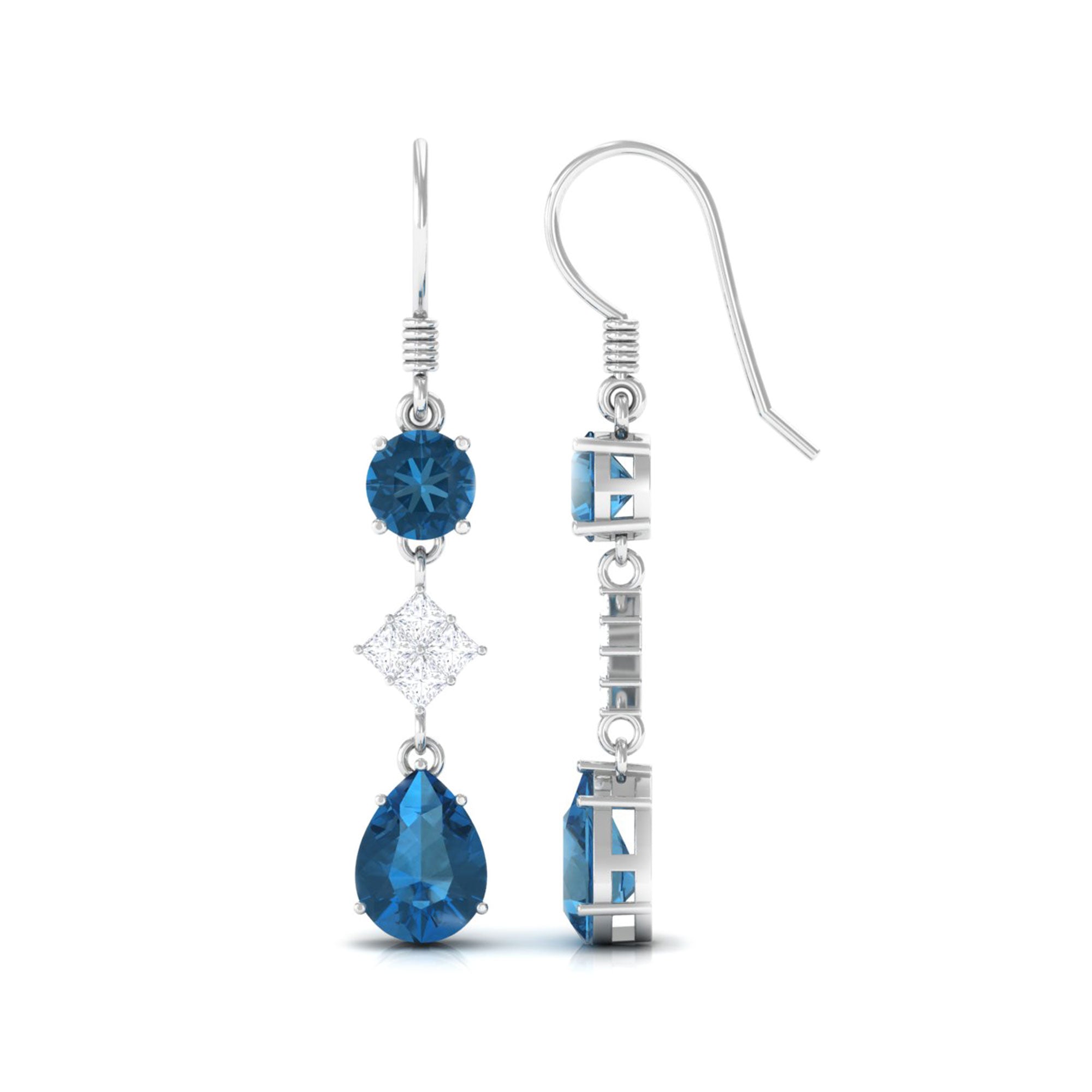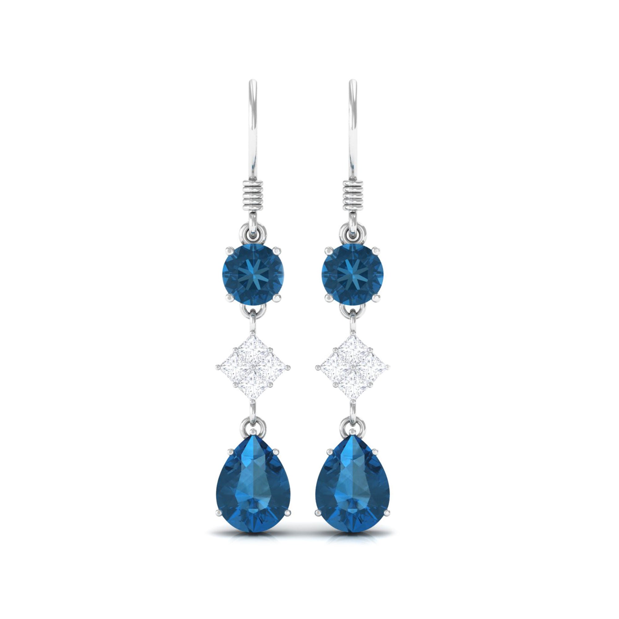 4.25 CT London Blue Topaz and Diamond Dangle Drop Earrings