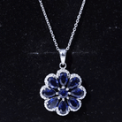 4.5 CT Created Blue Sapphire Flower Pendant with Moissanite Halo