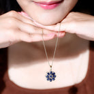 Make a bold statement with the stylish Floral Pendant. Adorned with Pear and Round Cut Created Blue Sapphire, expertly set in a prong setting, and encircled by Round Moissanite, this Pendant is a stunning piece of fine jewelry. The Created Blue Sapphire Gold Pendant boasts a captivating design that is sure to allure.