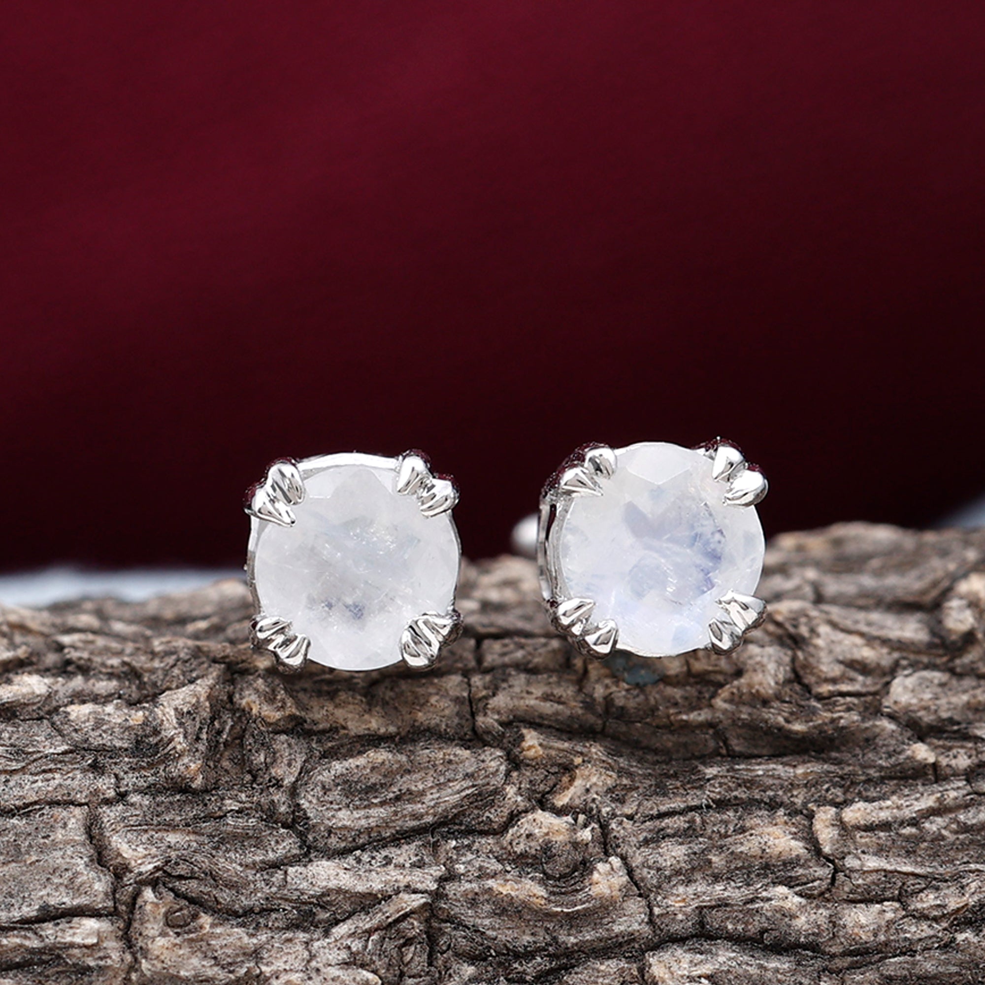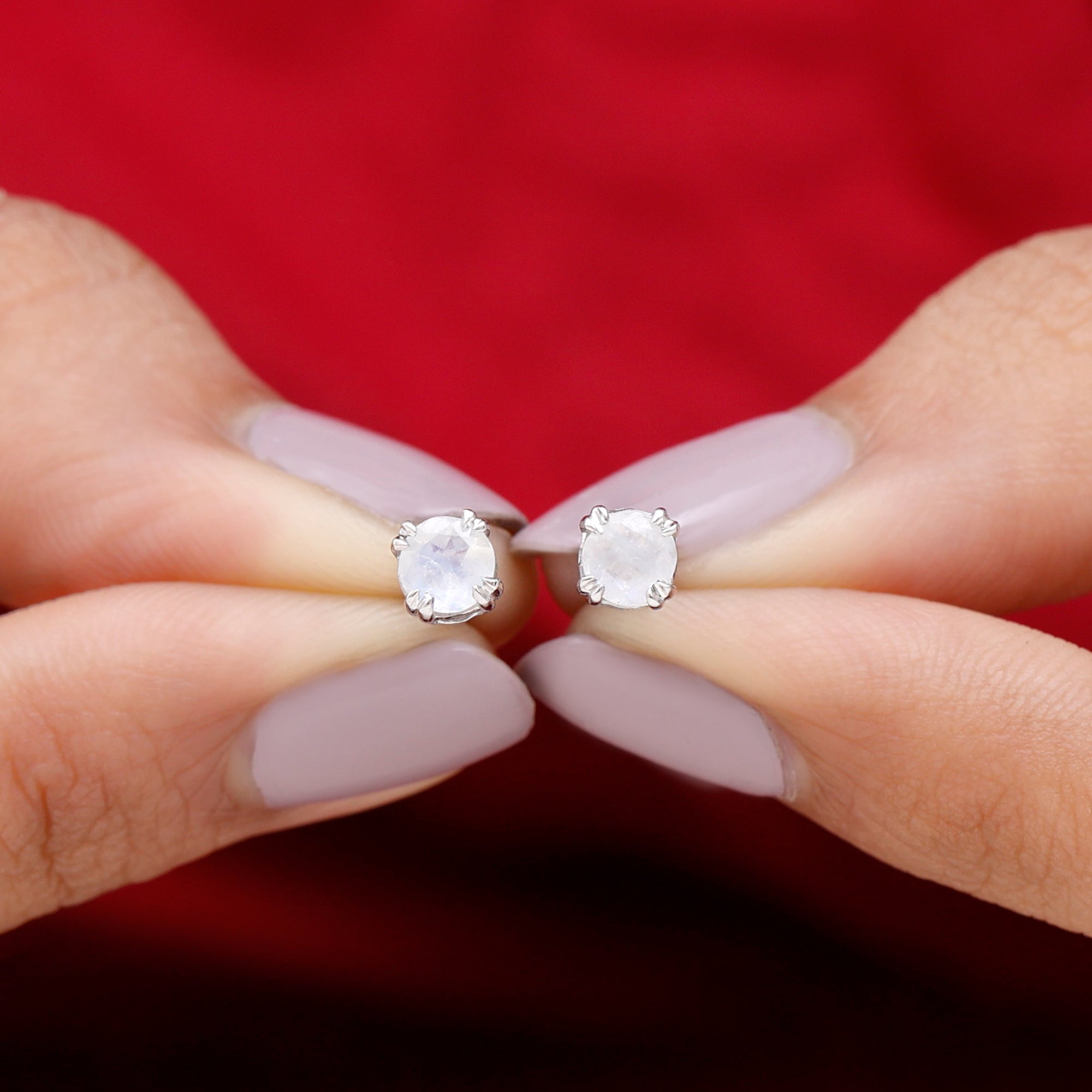 4.5 MM Moonstone Solitaire Stud Earrings in Double Claw Prong Setting