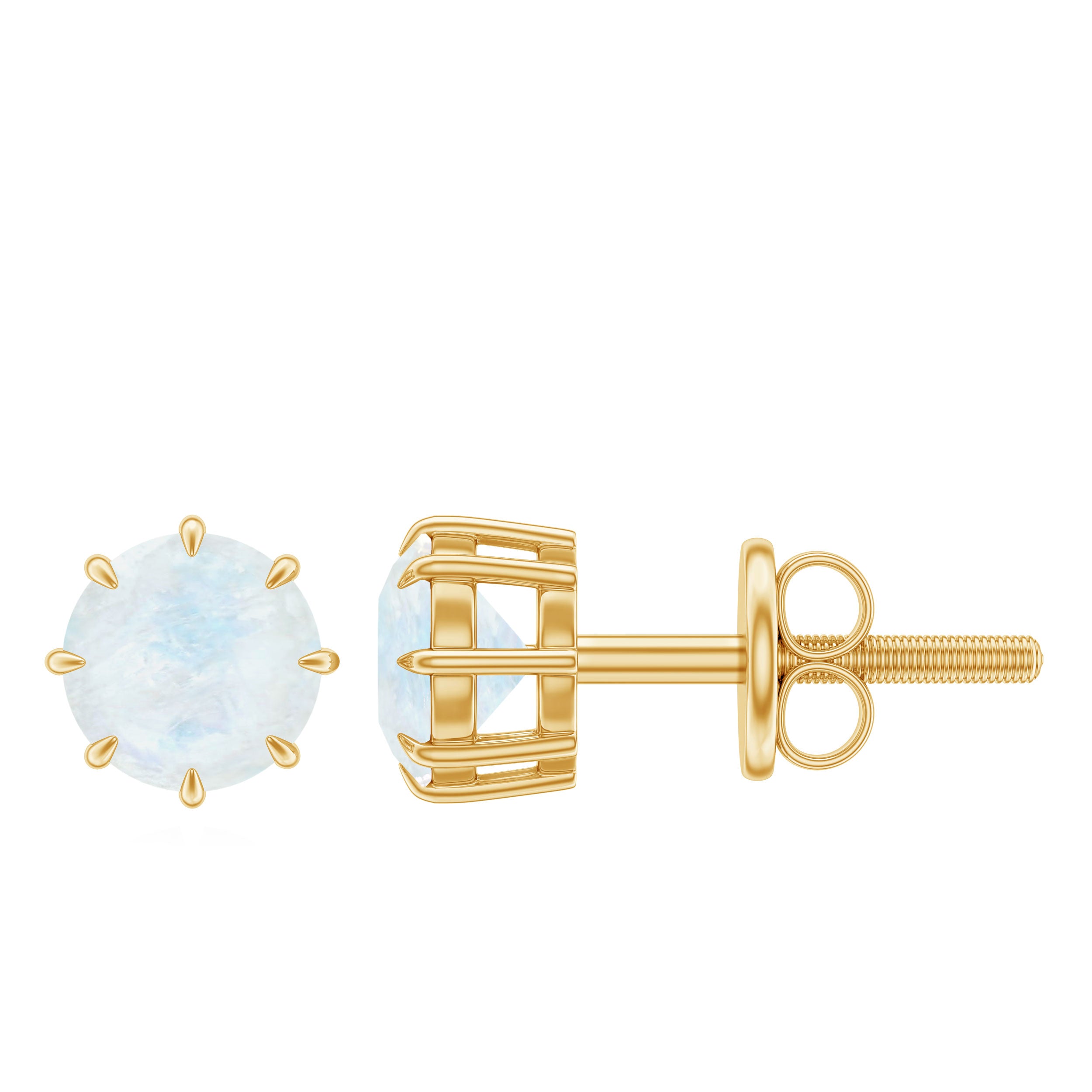 Whether it is New Year Party or Everyday dressing, this Stud Earrings fits with every look. These Earrings embellished with Round Cut Moonstone set as Solitaire in 8 Claw Prong Setting. These Screw Back Earring are composed by Solid Gold.