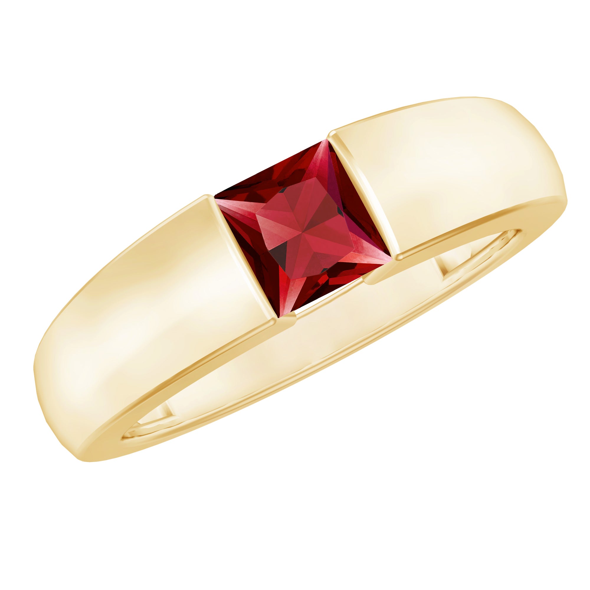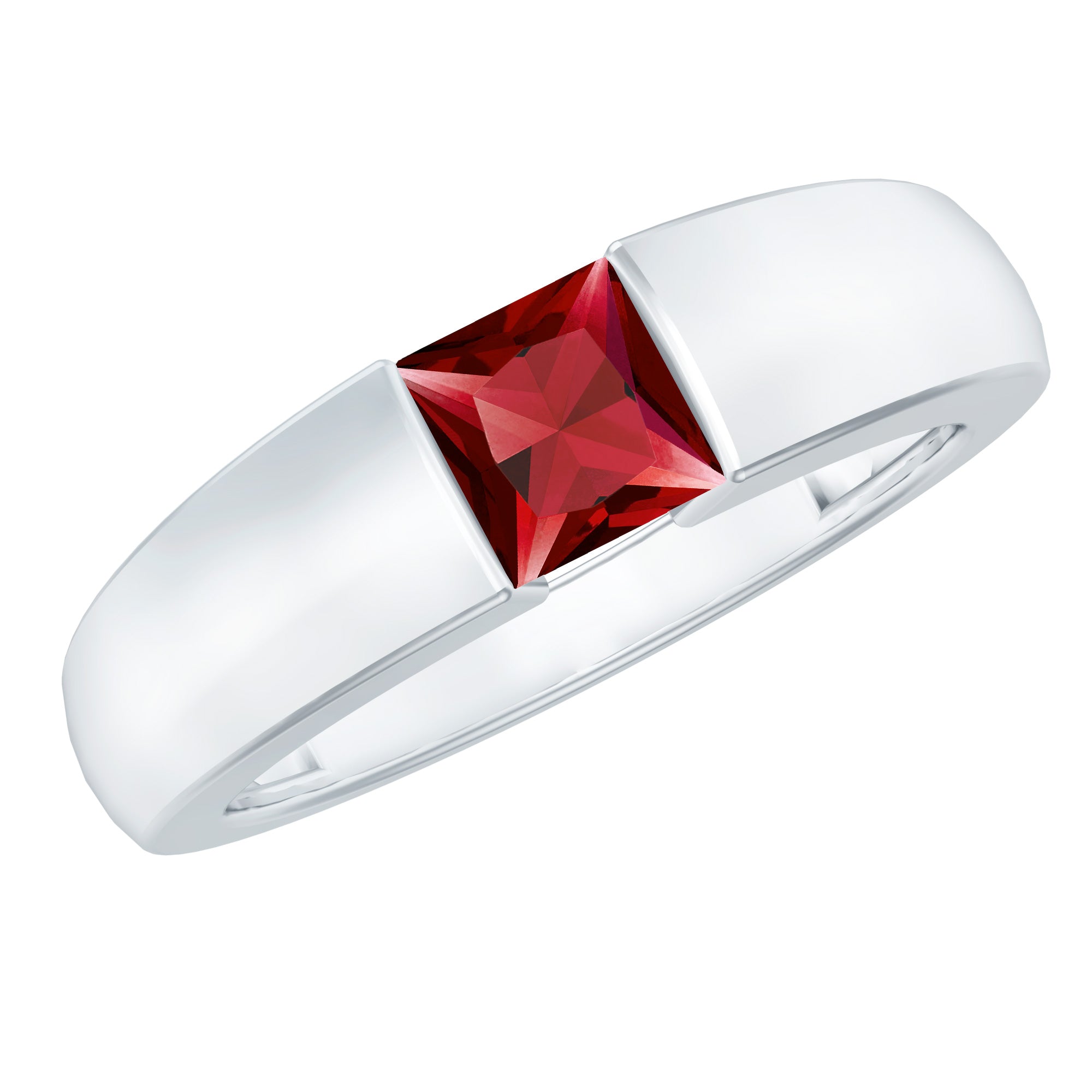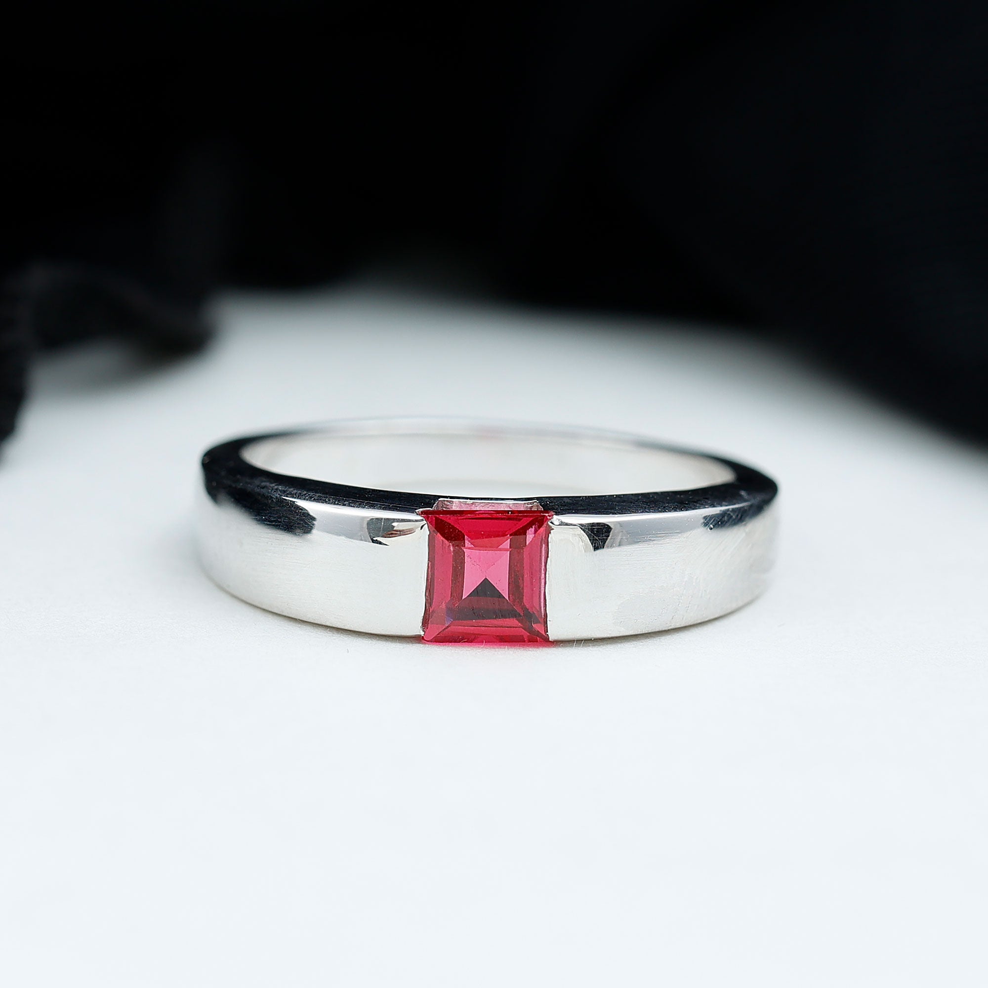 4.5 MM Tension Mount Set Princess Cut Created Ruby Unisex Engagement Ring