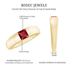 The Solitaire Engagement Ring features a 4.5 MM Princess Cut Lab Created Ruby set with Tension Mount Setting. The Solid Gold crafted Unisex Engagement Ring is a perfect piece to propose your love with.