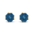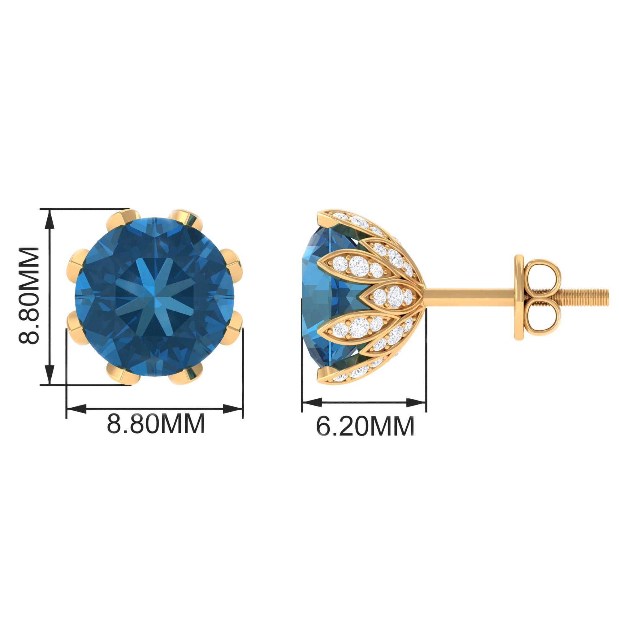 Jewelry has the power to be the one little thing that makes you feel unique. These Solitaire Earrings are embellished with Round Shape London Blue Topaz and Diamond in Flower Setting. These London Blue Topaz Earrings are highly customizable and allow you to choose your preferred metal color from the available options. Tell your story by wearing these Designer Bridal Earrings.