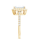 Surprise your loved one with a stunning anniversary gift - a unique womens ring crafted from gold. The Simulated Diamond ring features an octagon-shaped solitaire Zircon at its center, surrounded by round-shaped zircon in a halo style. Additional round-shaped zircon is beautifully engraved in a Fishtail setting as side stones, completing the exquisite design of this ring. Make her feel special with this beautiful and unique zircon solitaire ring.