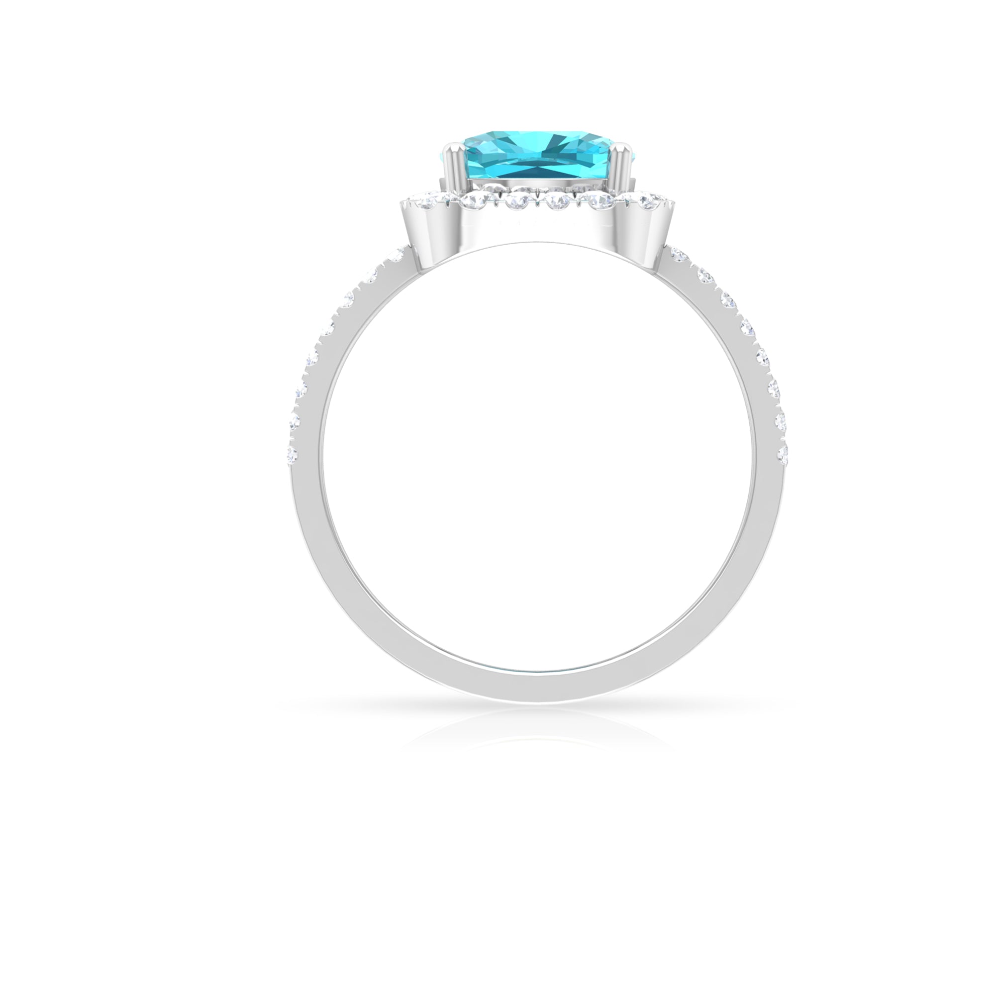 4 CT Cushion Shape Swiss Blue Topaz and Diamond Accent Engagement Ring
