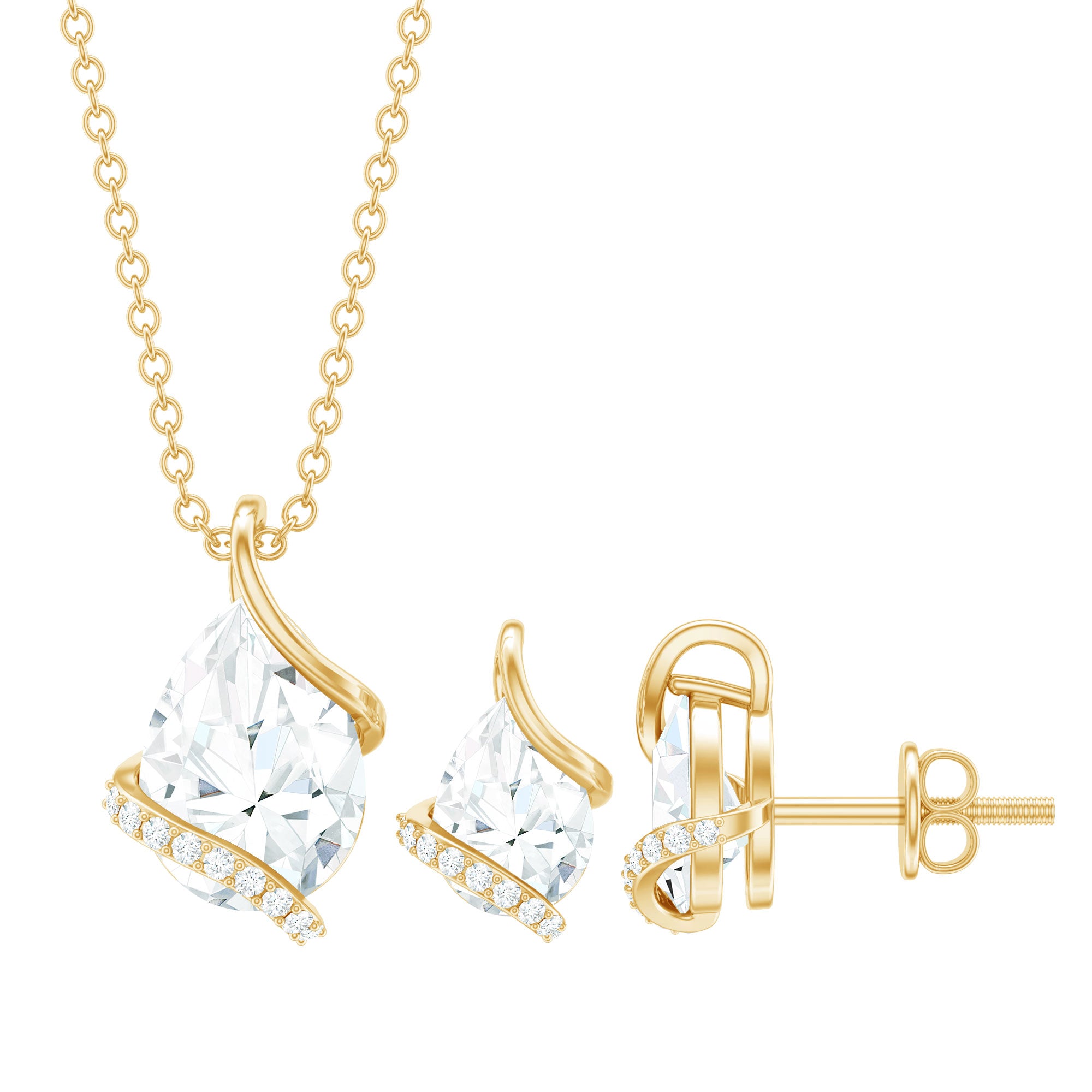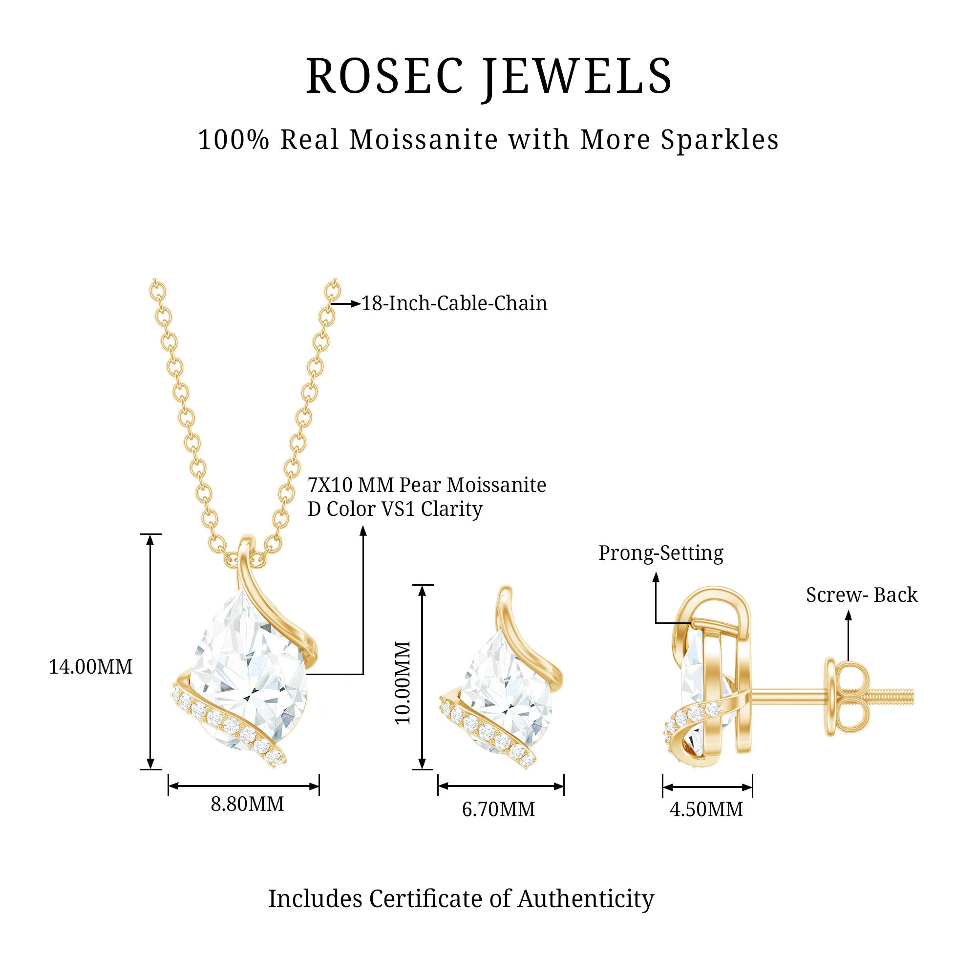 4 CT Pear and Round Shape Moissanite Teardrop Jewelry Set