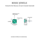 4 CT Princess Cut Lab Grown Emerald Solitaire Stud Earring