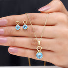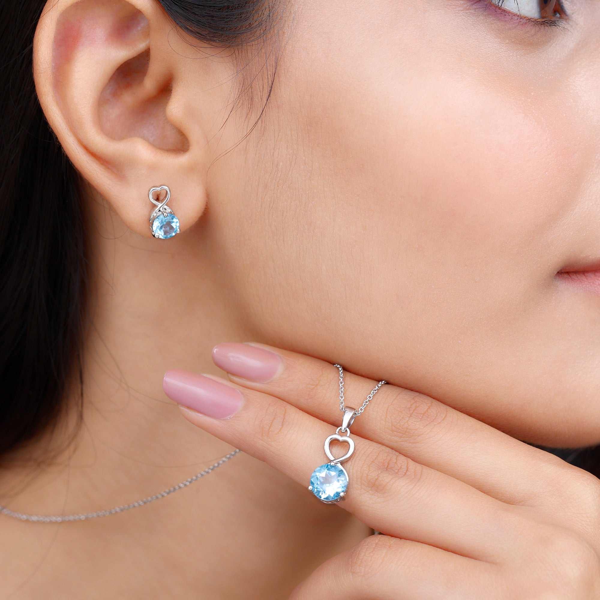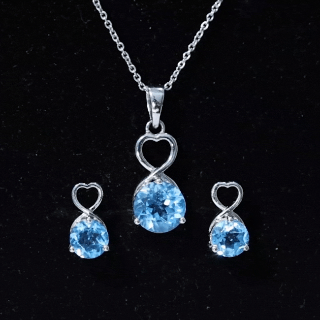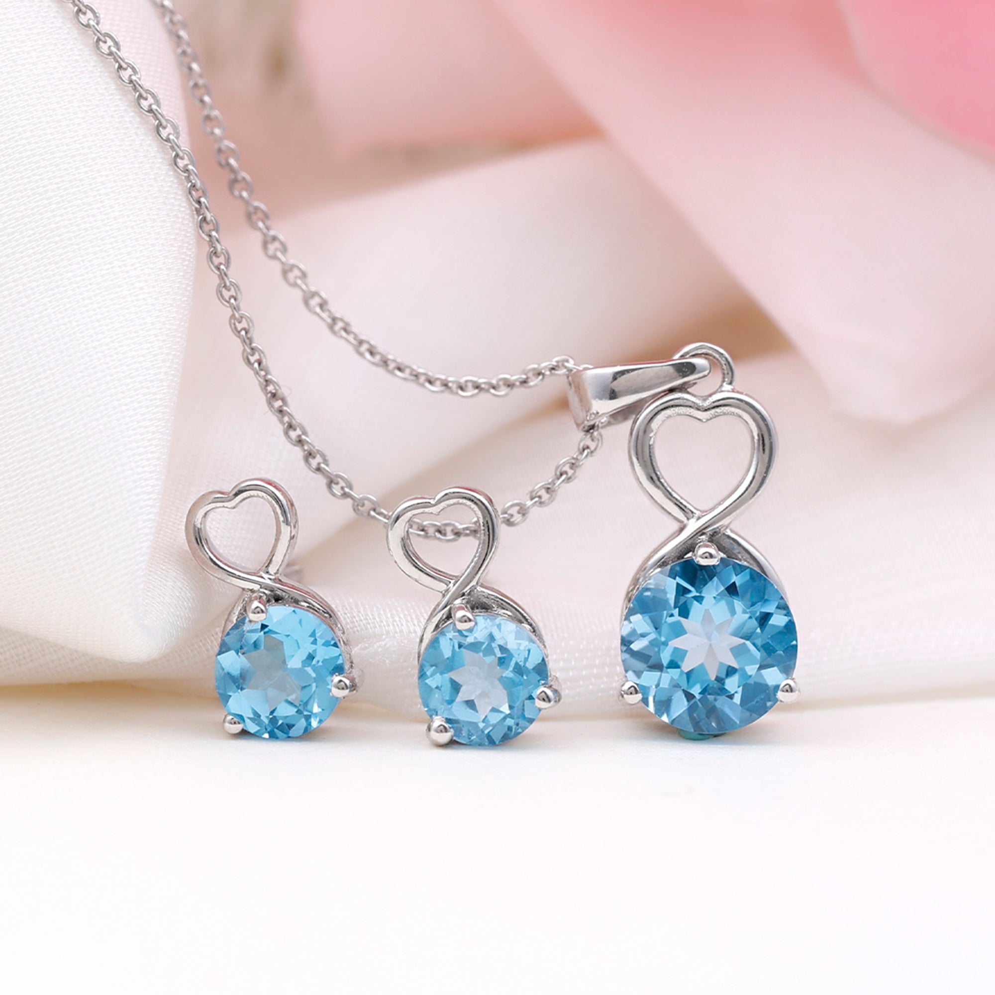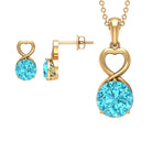 4 CT Swiss Blue Topaz Solitaire Heart Shape Jewelry set