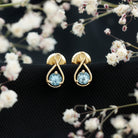 4 MM Aquamarine Solitaire and Gold Infinity Stud Earrings