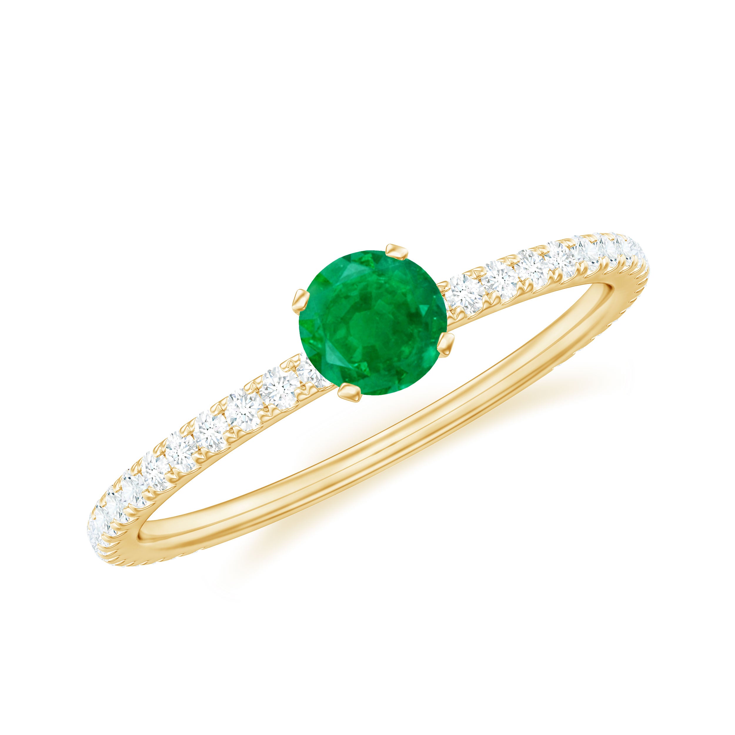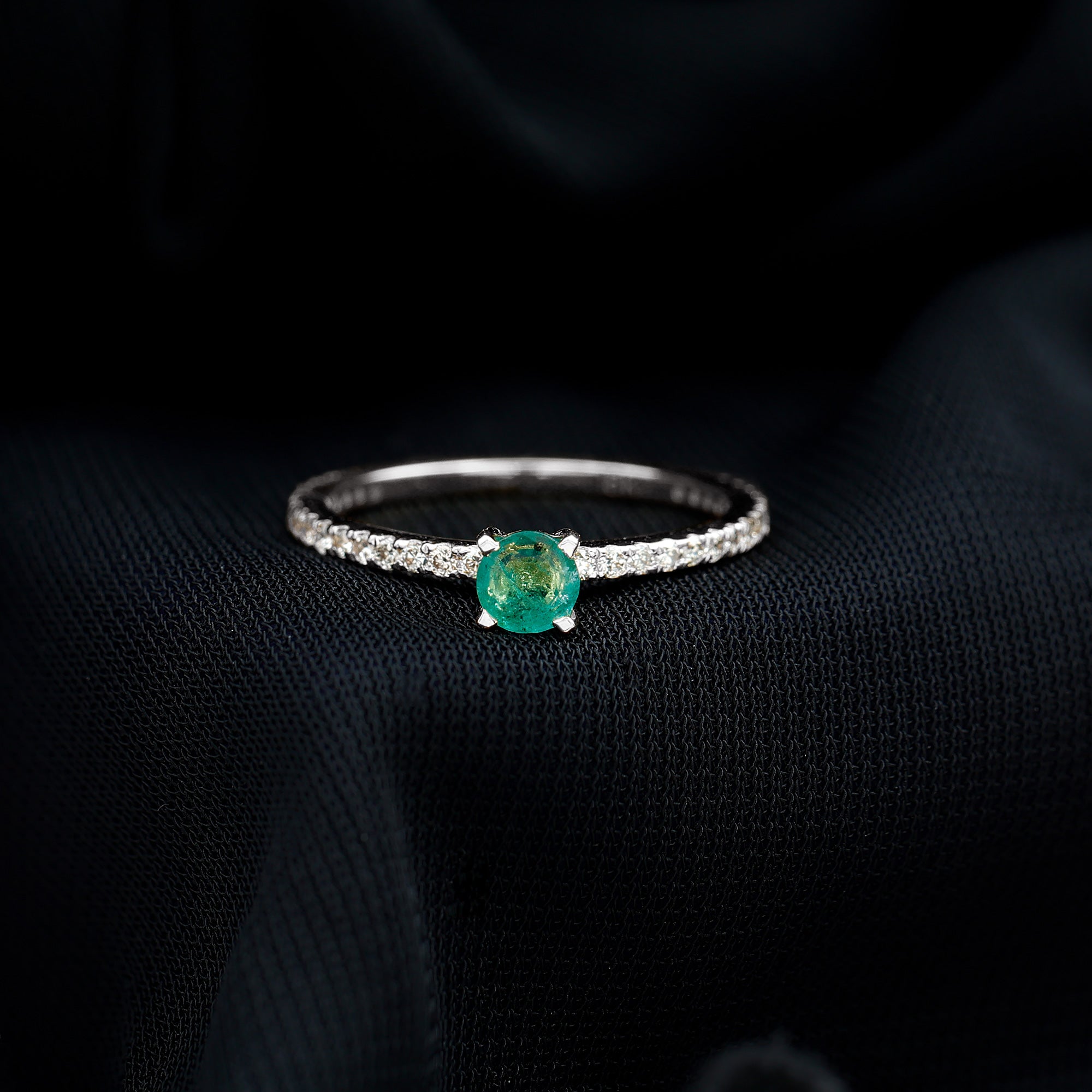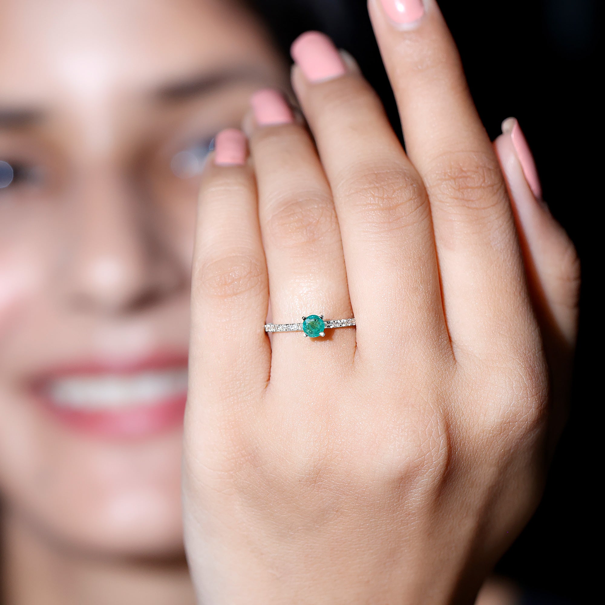 Wanna make her day really special and give her something she can keep close to her heart forever then give her this mesmerizing Solitaire Ring showcasing a dainty Round Shape Emerald set in peg head setting while pave set Round Shape Diamonds enhances its shank.