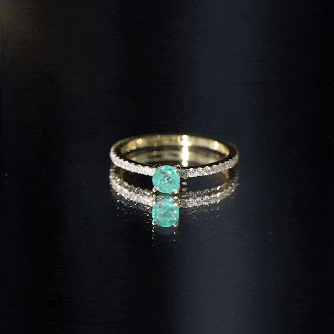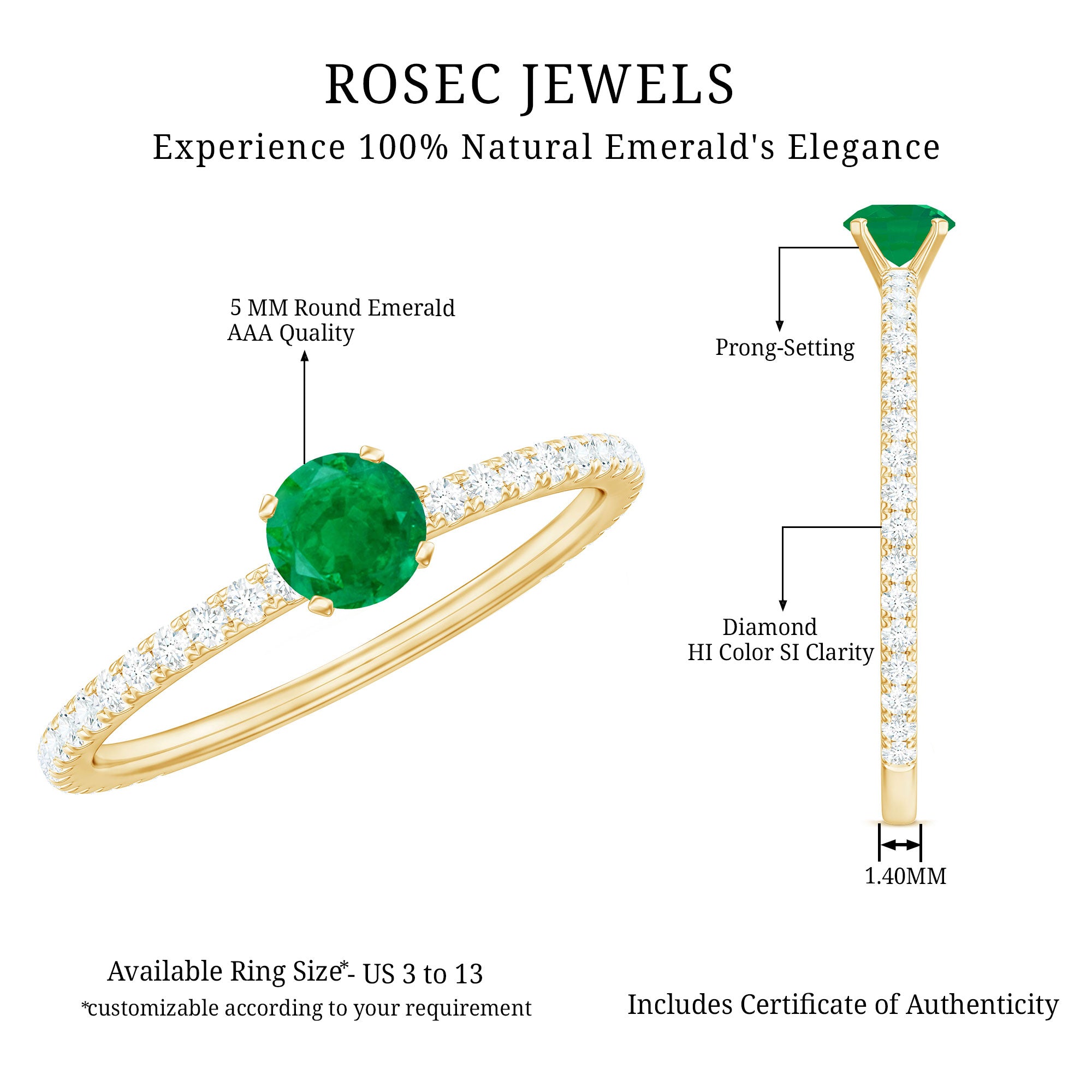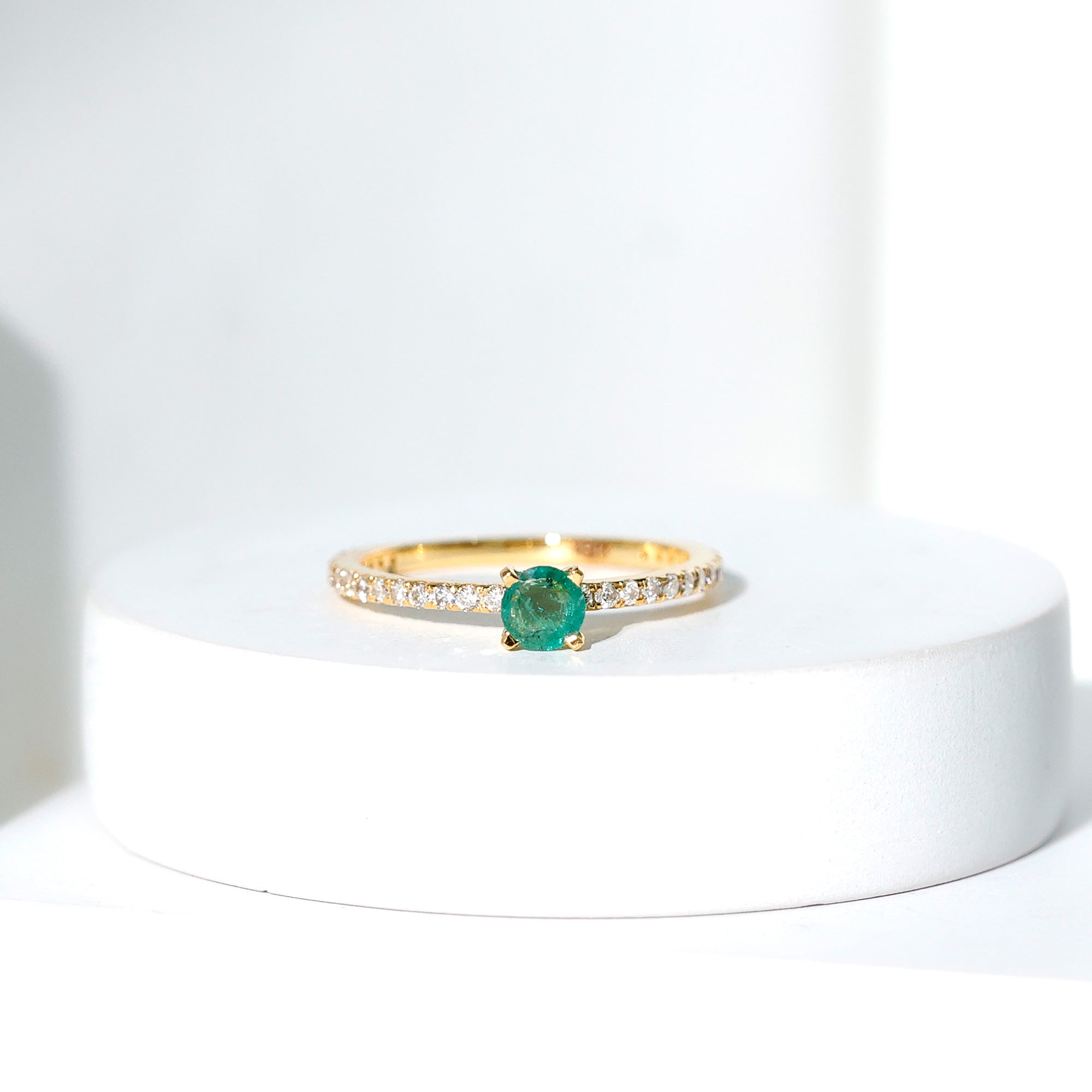 Wanna make her day really special and give her something she can keep close to her heart forever then give her this mesmerizing Solitaire Ring showcasing a dainty Round Shape Emerald set in peg head setting while pave set Round Shape Diamonds enhances its shank.