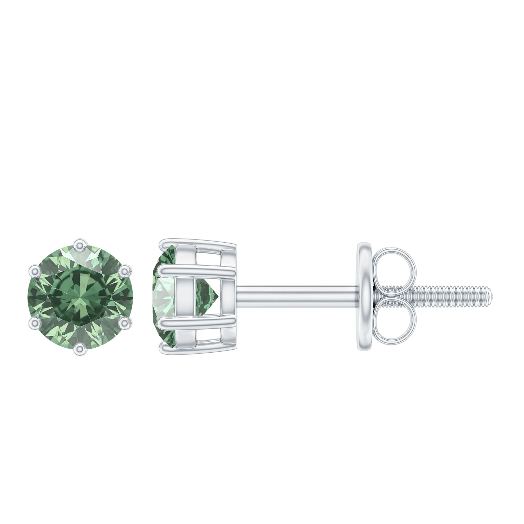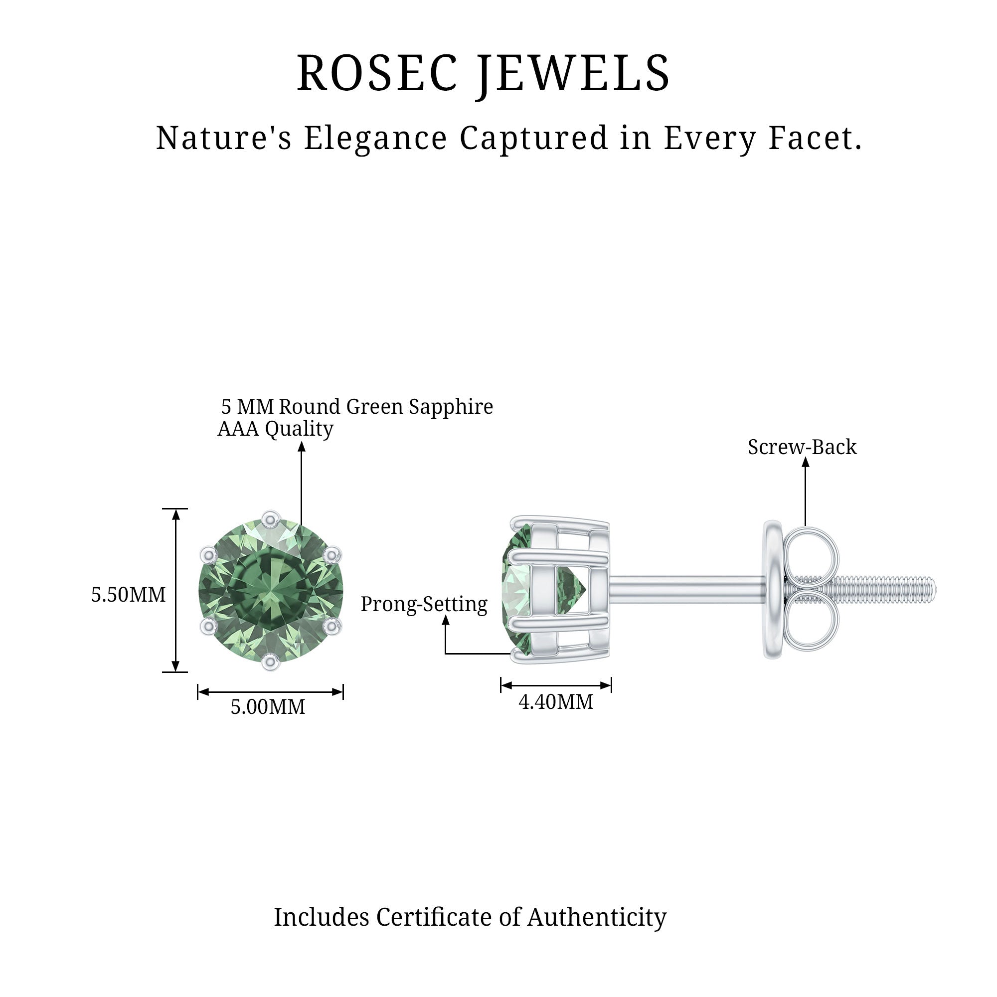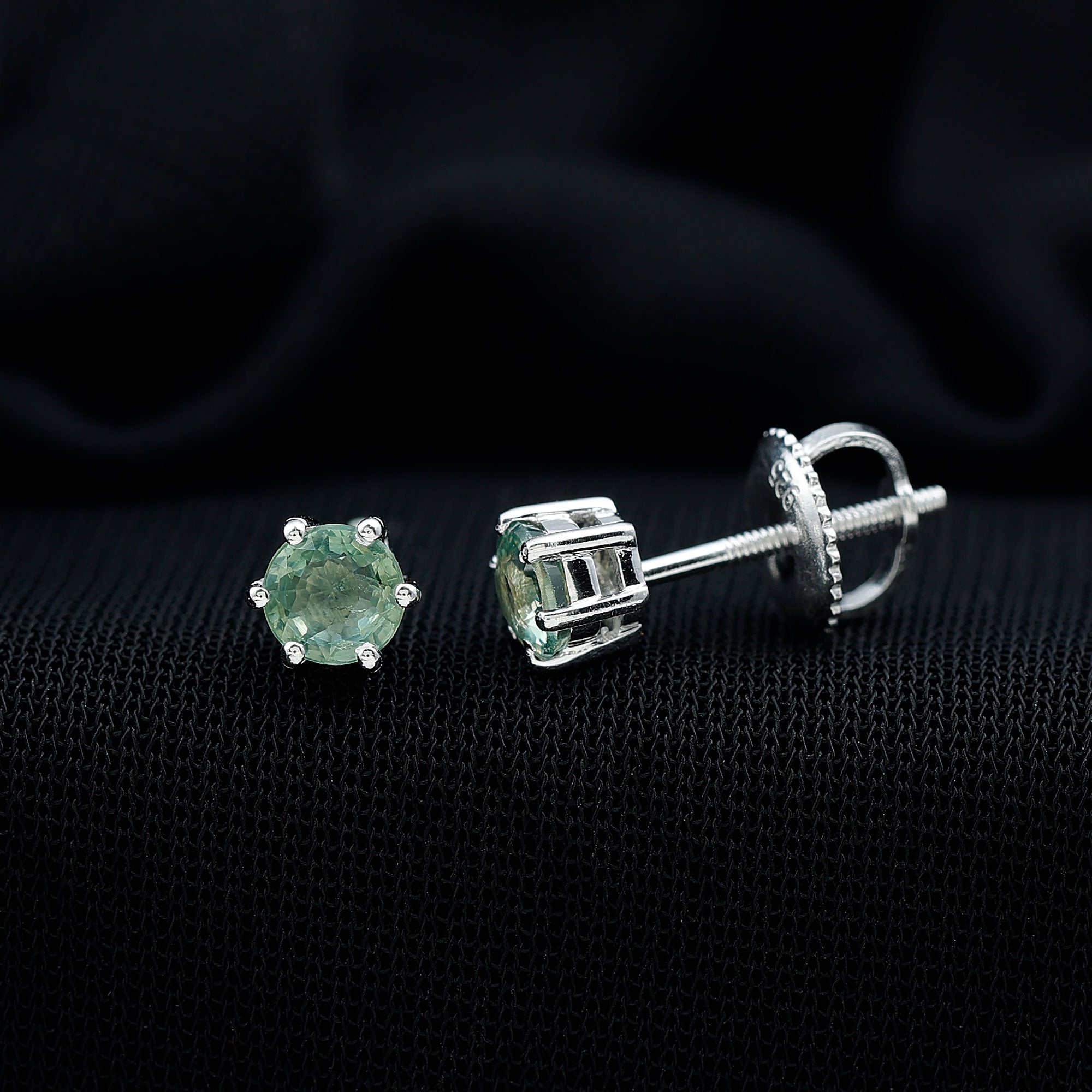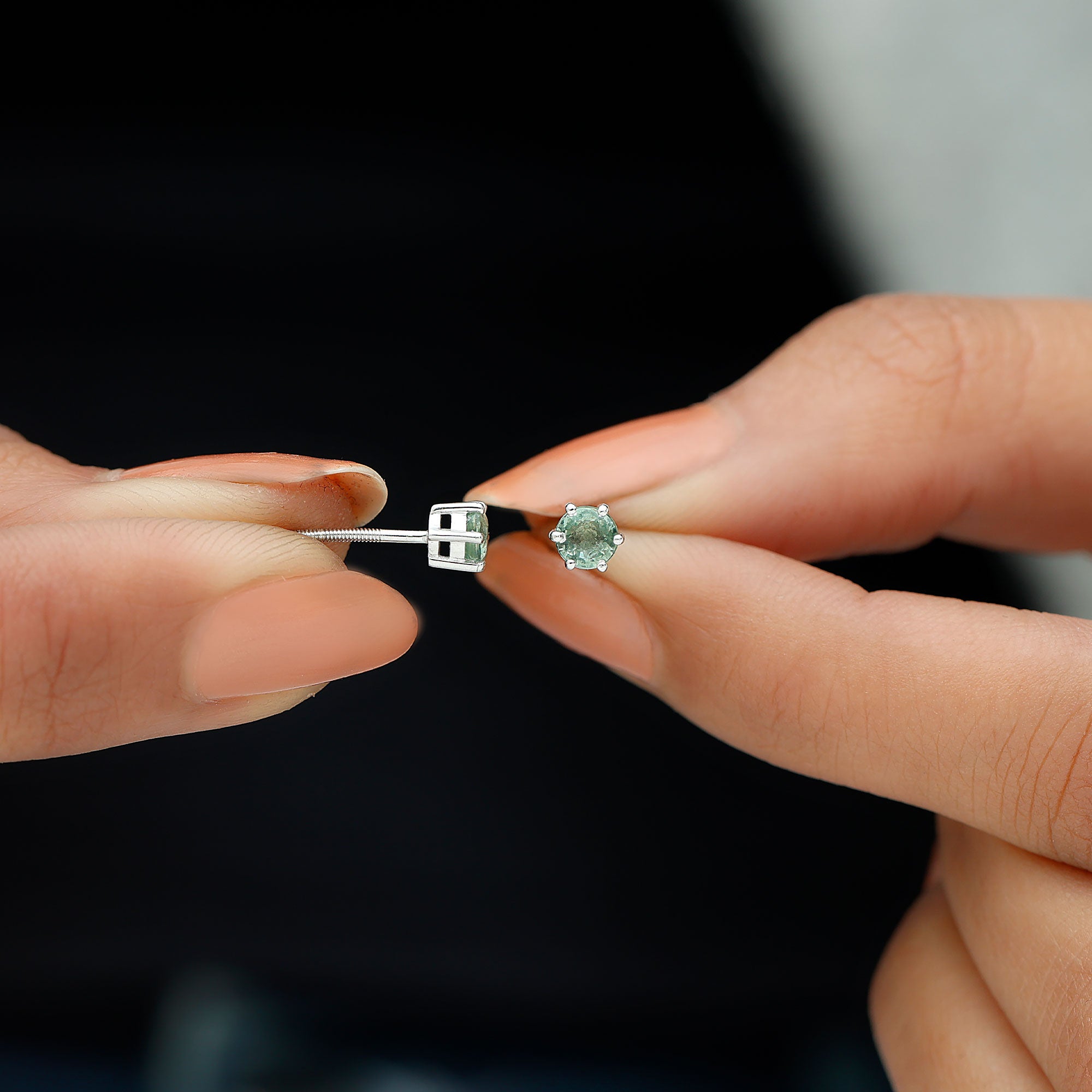 4 MM Genuine Green Sapphire Solitaire Stud Earrings in 6 Prong Setting