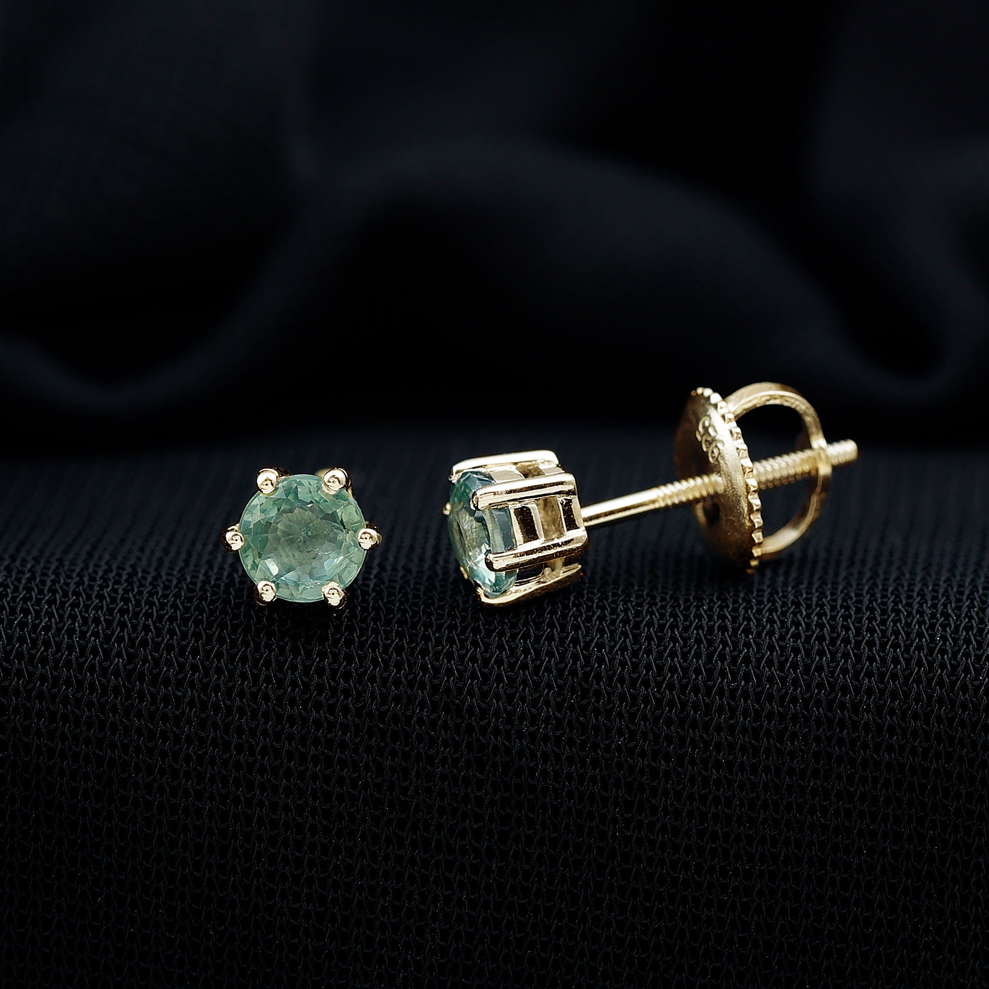 Grab this Solitaire Earrings for your lady love to make her feel special, adorned with Round Cut Green Sapphire set as Solitaire in 6 Prong Setting. This Stud Earrings crafted in Solid Gold Metal.
