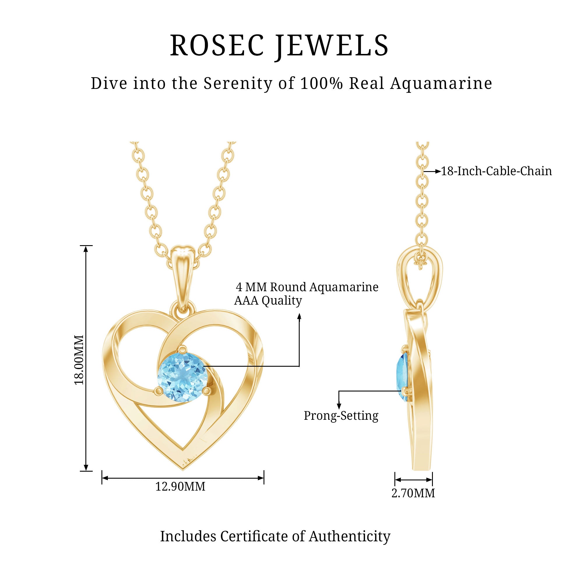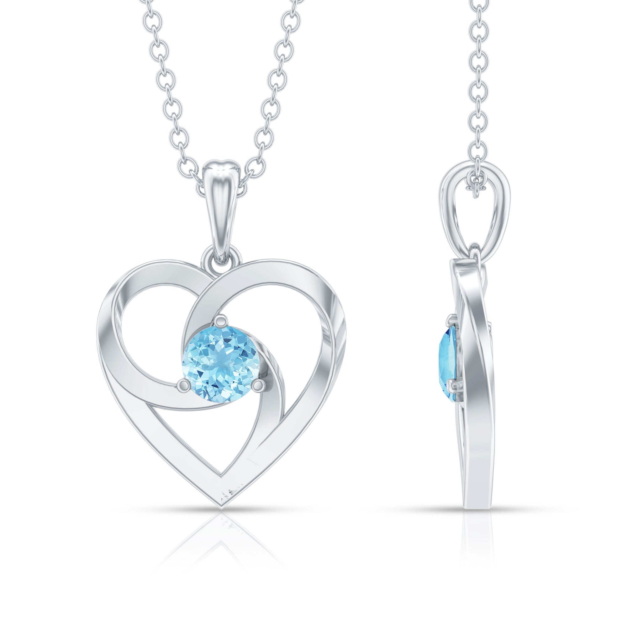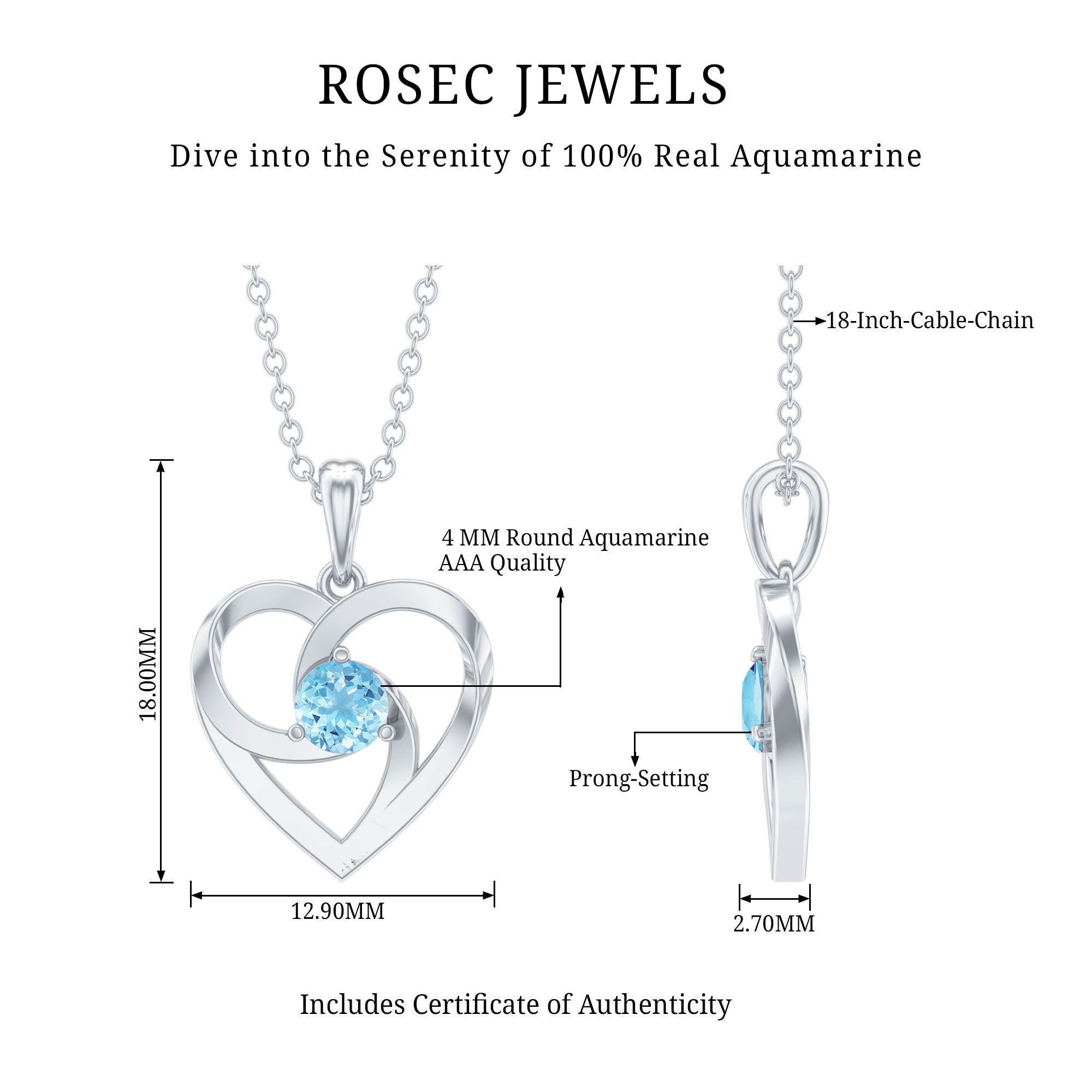 4 MM March Birthstone Aquamarine Solitaire Heart Knot Necklace