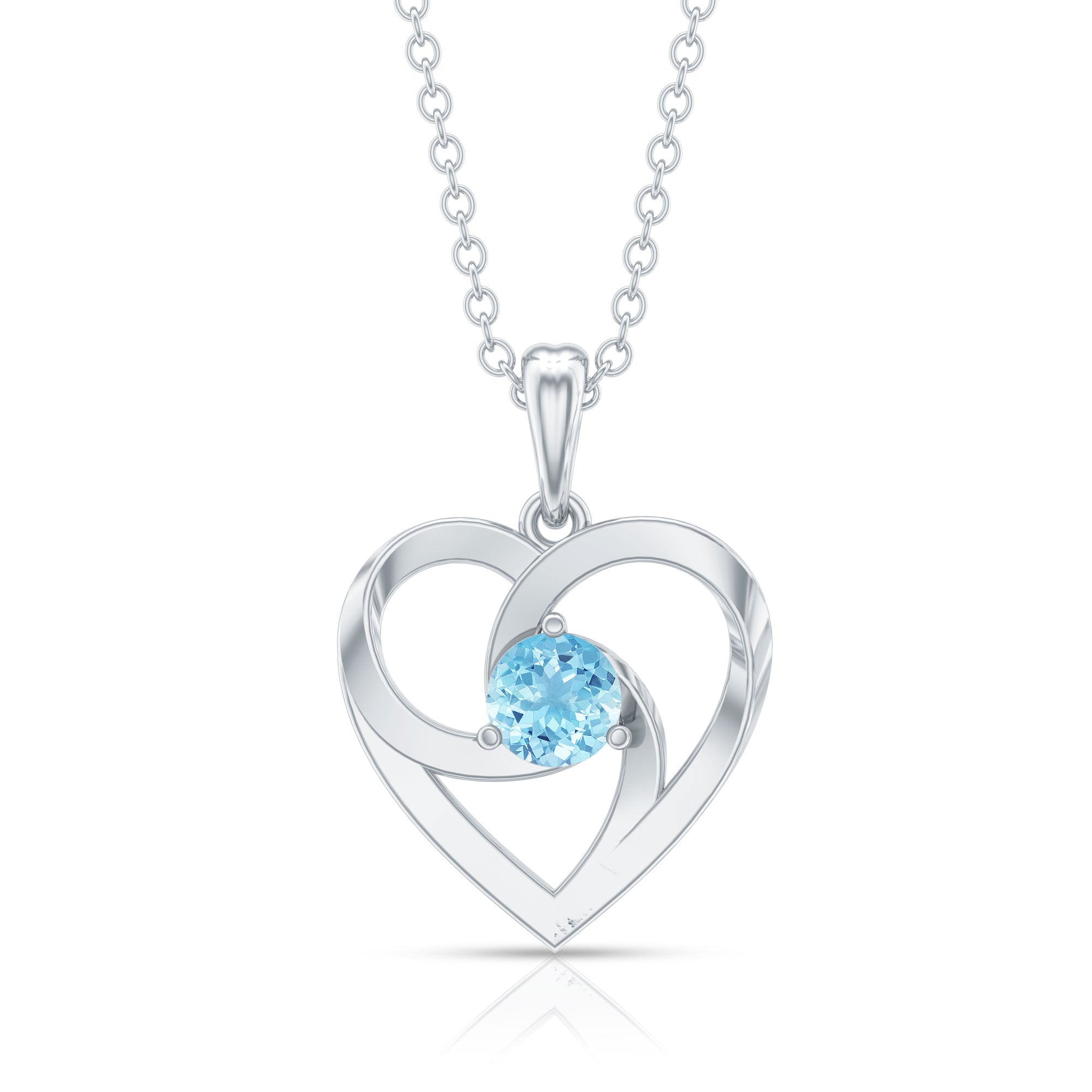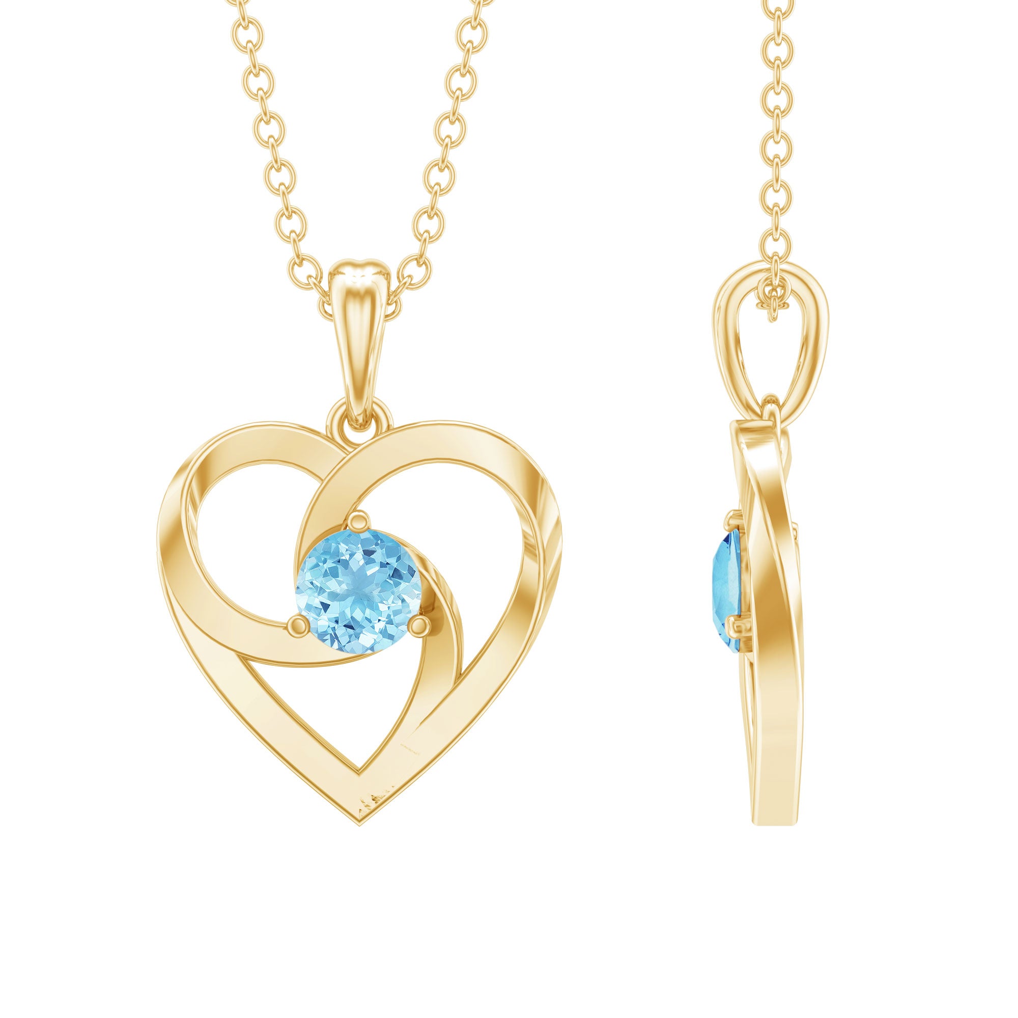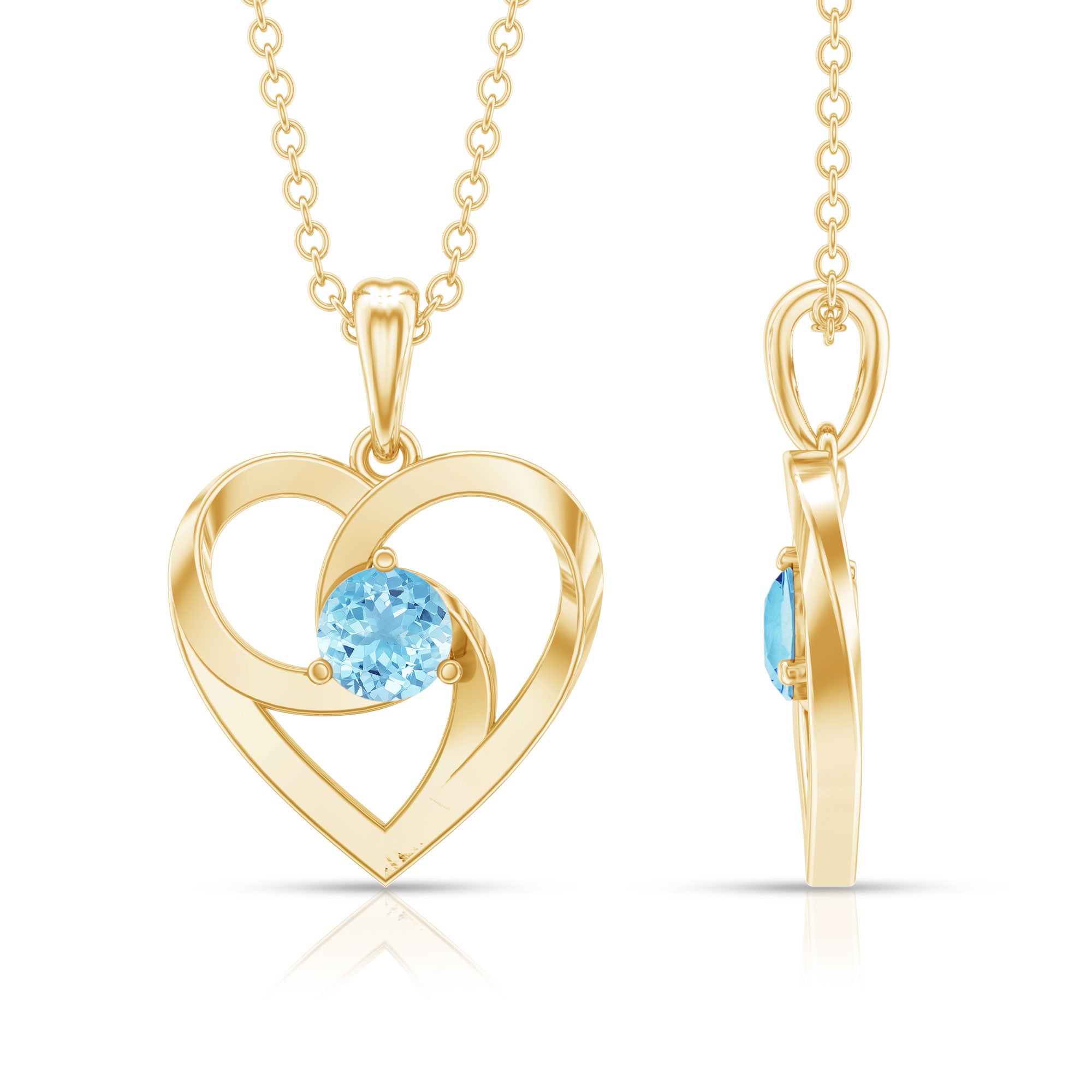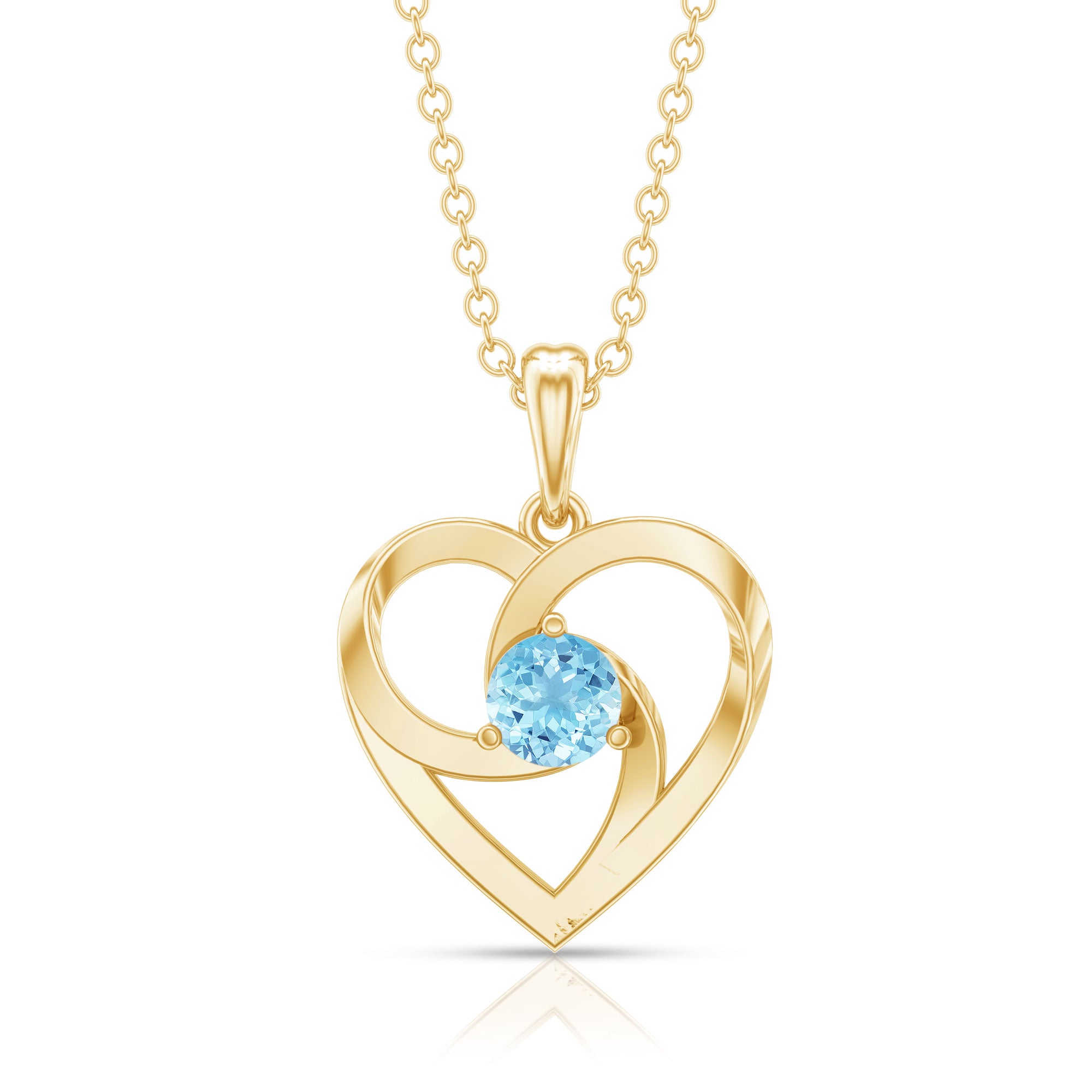 Set trends by wearing this Heart Knot Pendant featuring Round Cut Aquamarine adorned in Solid Gold.