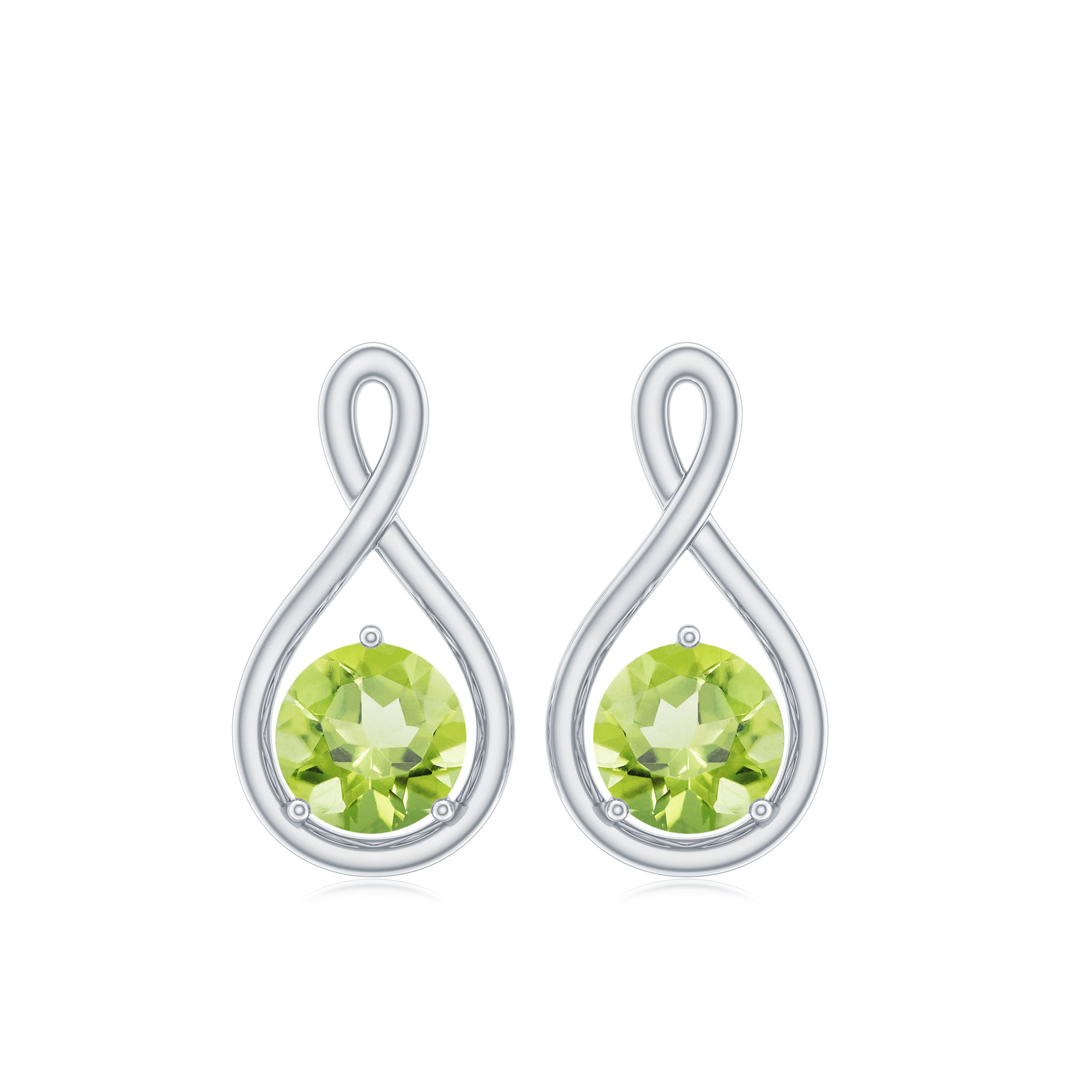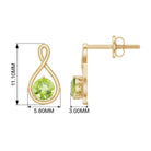 The Infinity Pattern Screw Back Finding featured Stud Earrings embellished with 4 MM Round Cut Peridot Gemstone is set as Solitaire in 3 Prong Setting, studded beautifully in the Solid Gold crafted Infinity symbol.