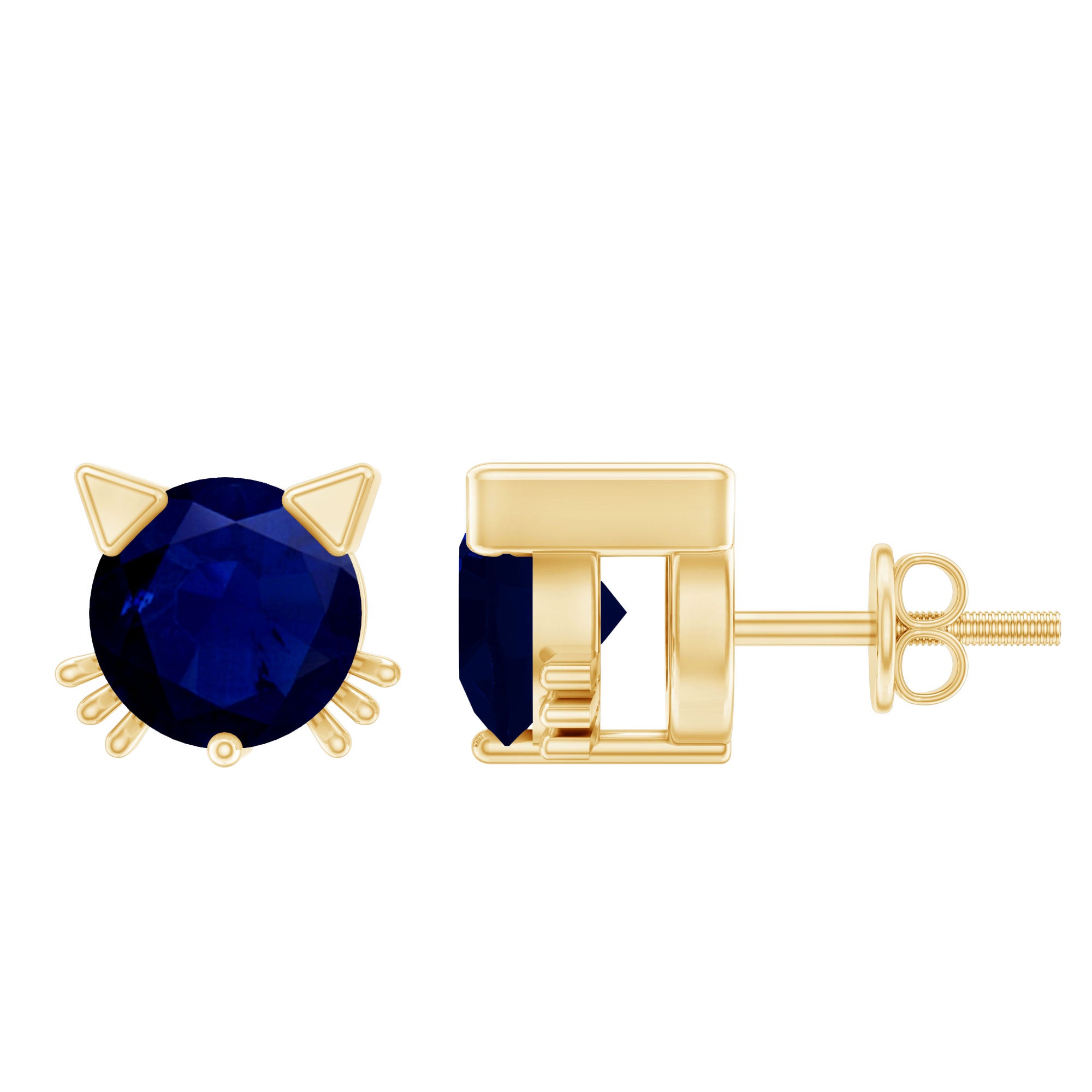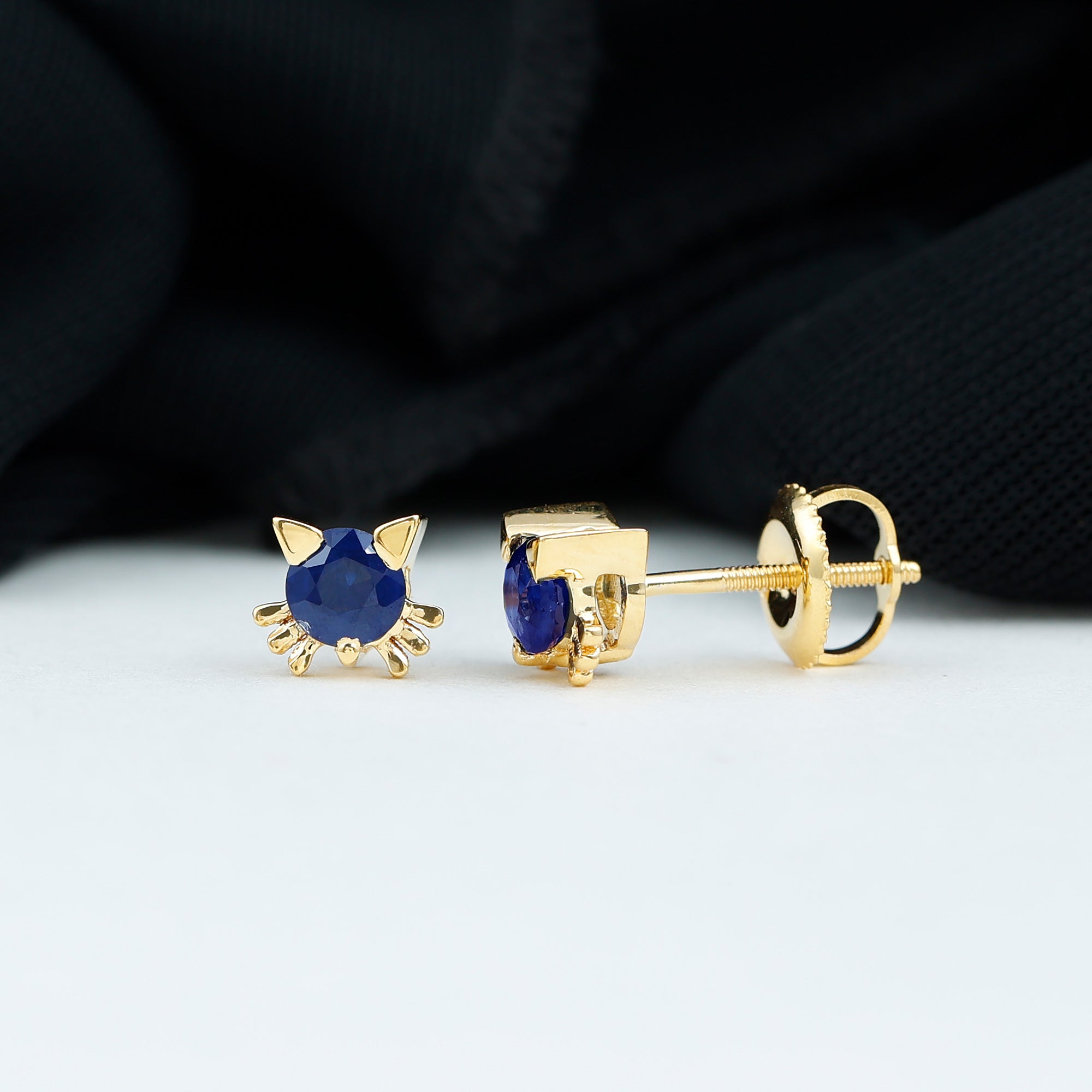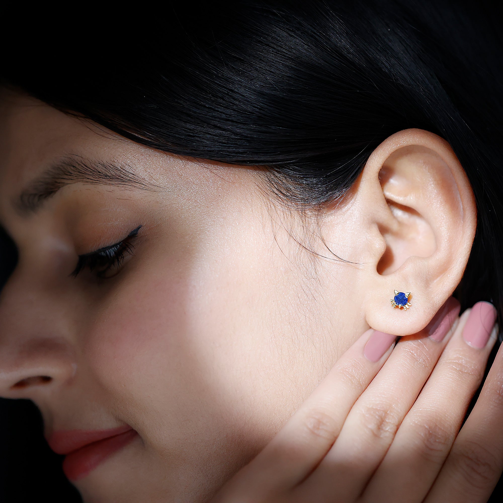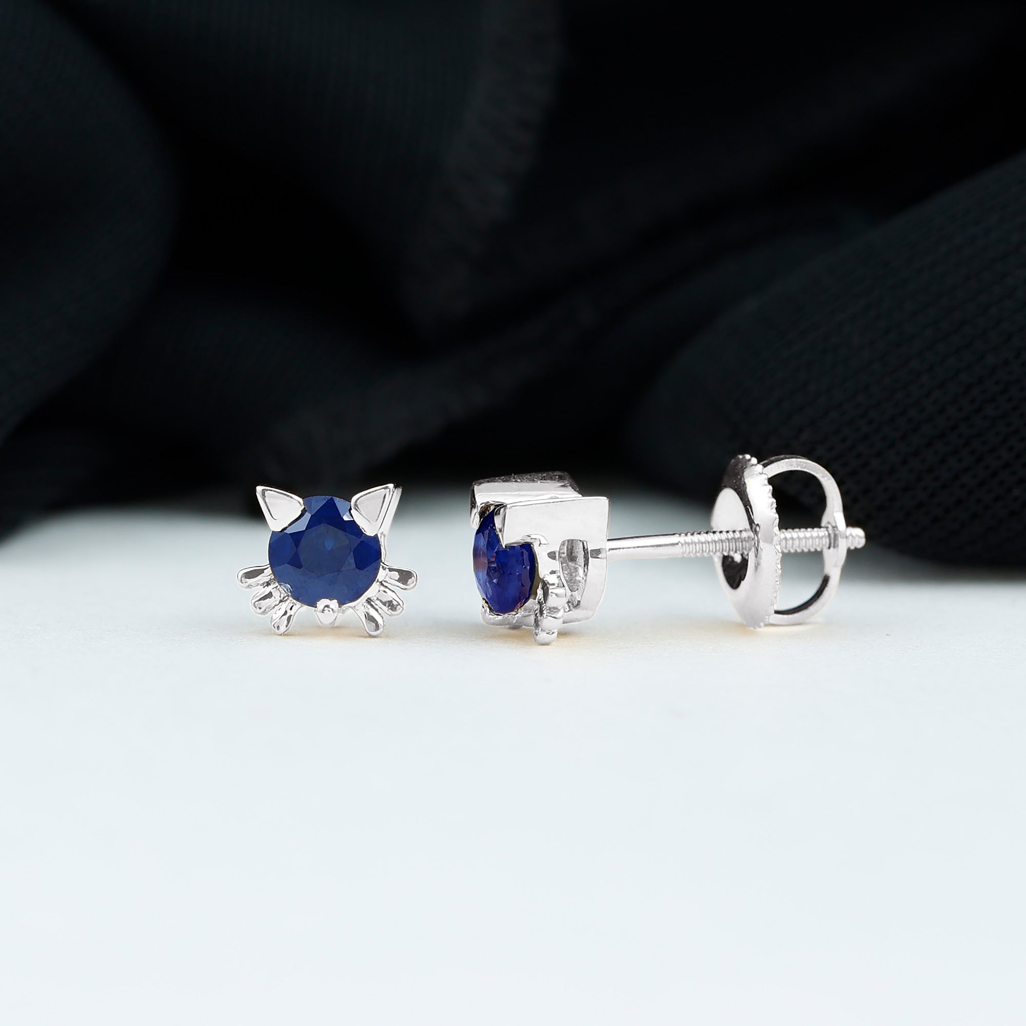 Adorn your ears with these Certified Round Blue Sapphire Stud Earrings, perfect for cat lovers. The blue gemstone sits securely in a prong setting for maximum brilliance. These cute kitty earrings make a great gift for birthdays, holidays, or just to make any day special. With a total weight of 0.75 carat and AAA quality, these earrings are certified and undergo strict quality checks to ensure the highest standards. Add some fun and color to your jewelry collection with these Certified Round Blue Sapphire Stud Earrings.
